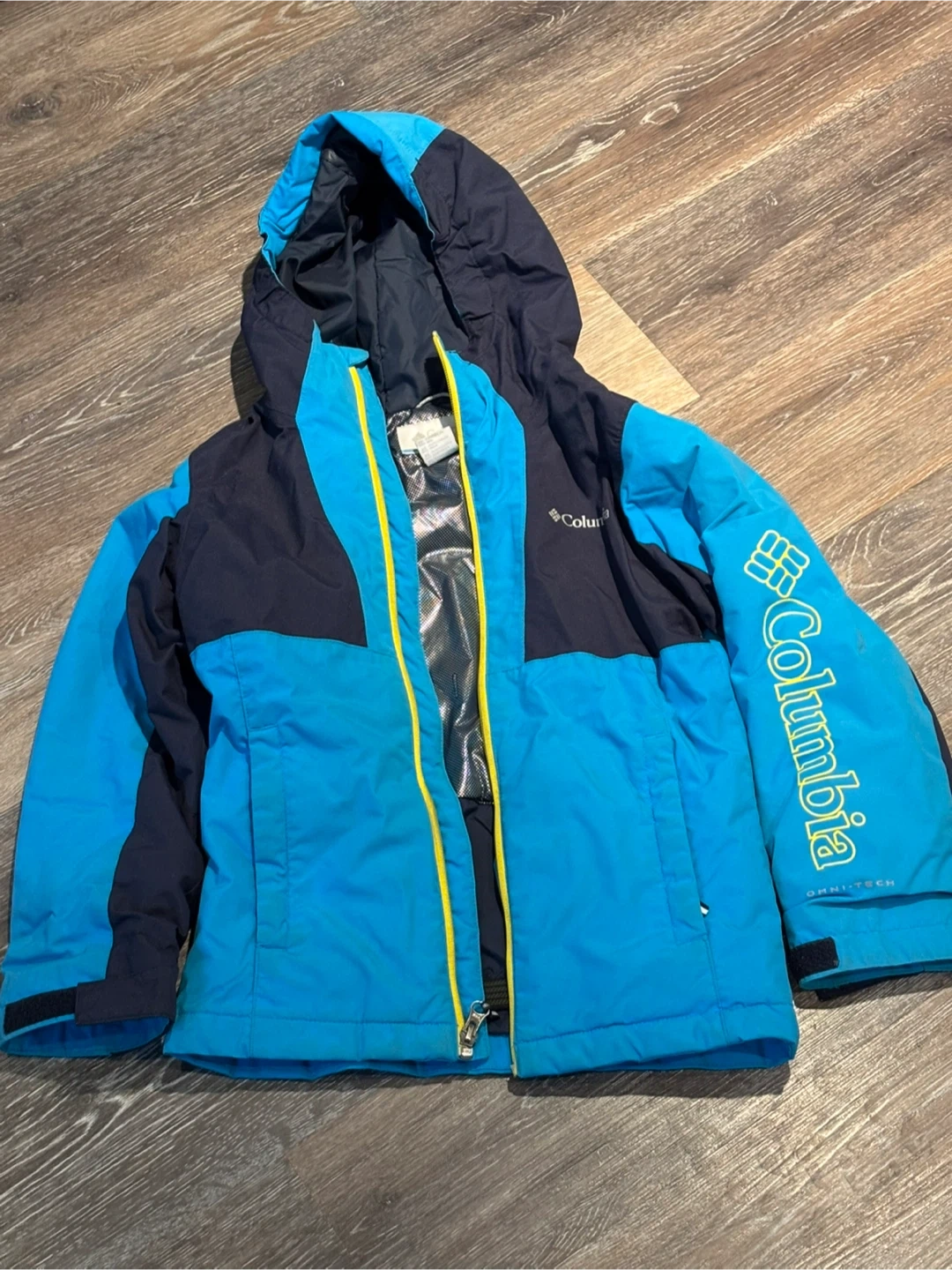 12Here's a Columbia winter jacket in great condition! It's a mix of blue and navy, perfect for keeping warm during those chilly days