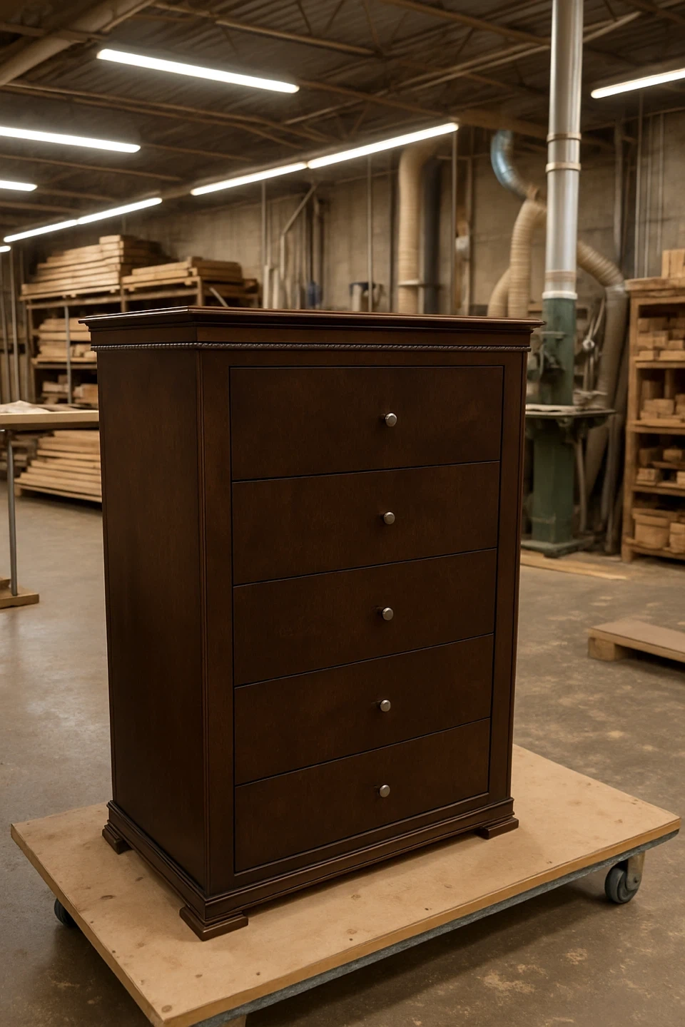 Selling a lovely dark brown wooden dresser with five drawers! It's in great shape and would be perfect for adding some extra storage to your bedroom or any other space in your home