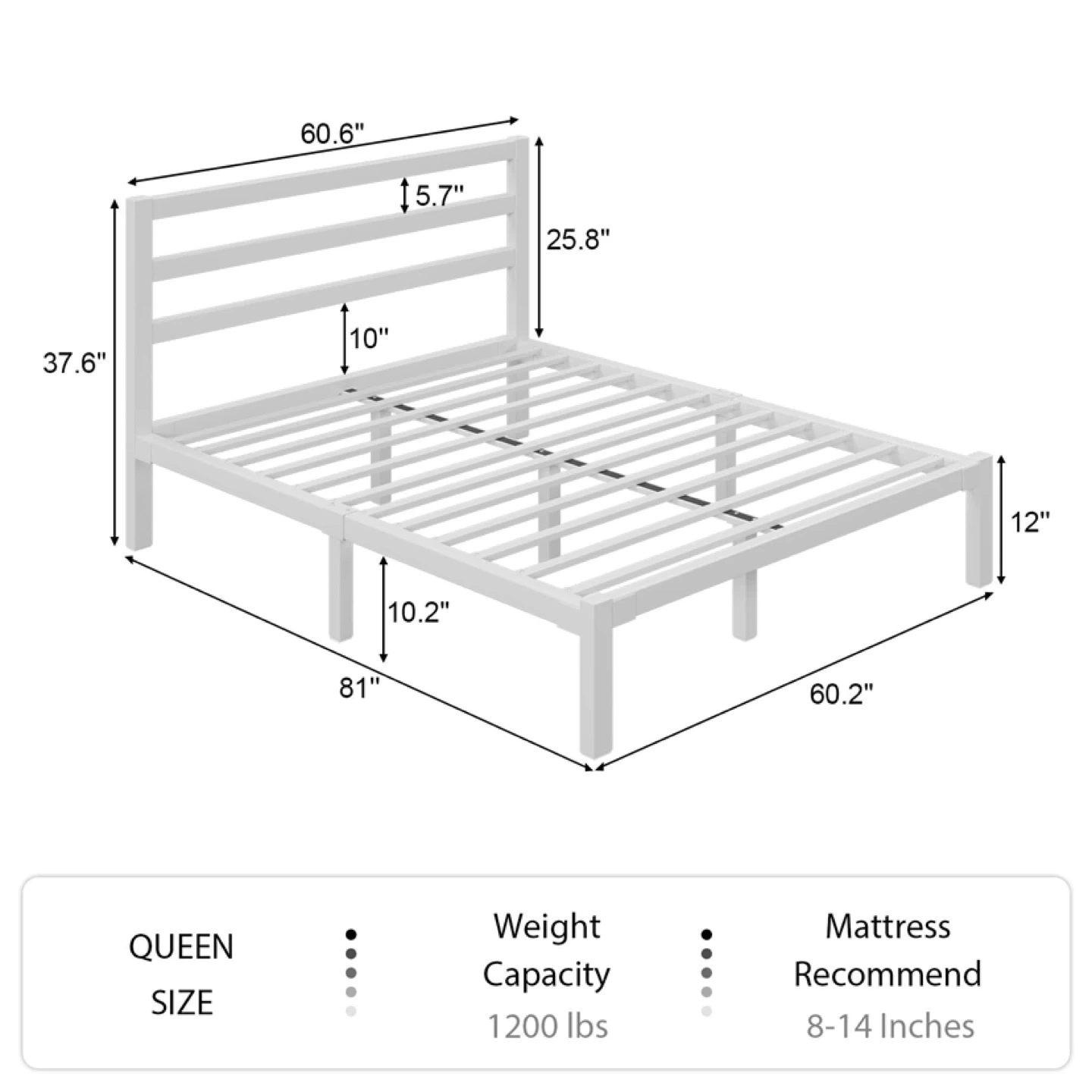 Queen Size Bed Frame, Metal Platform with Headboard