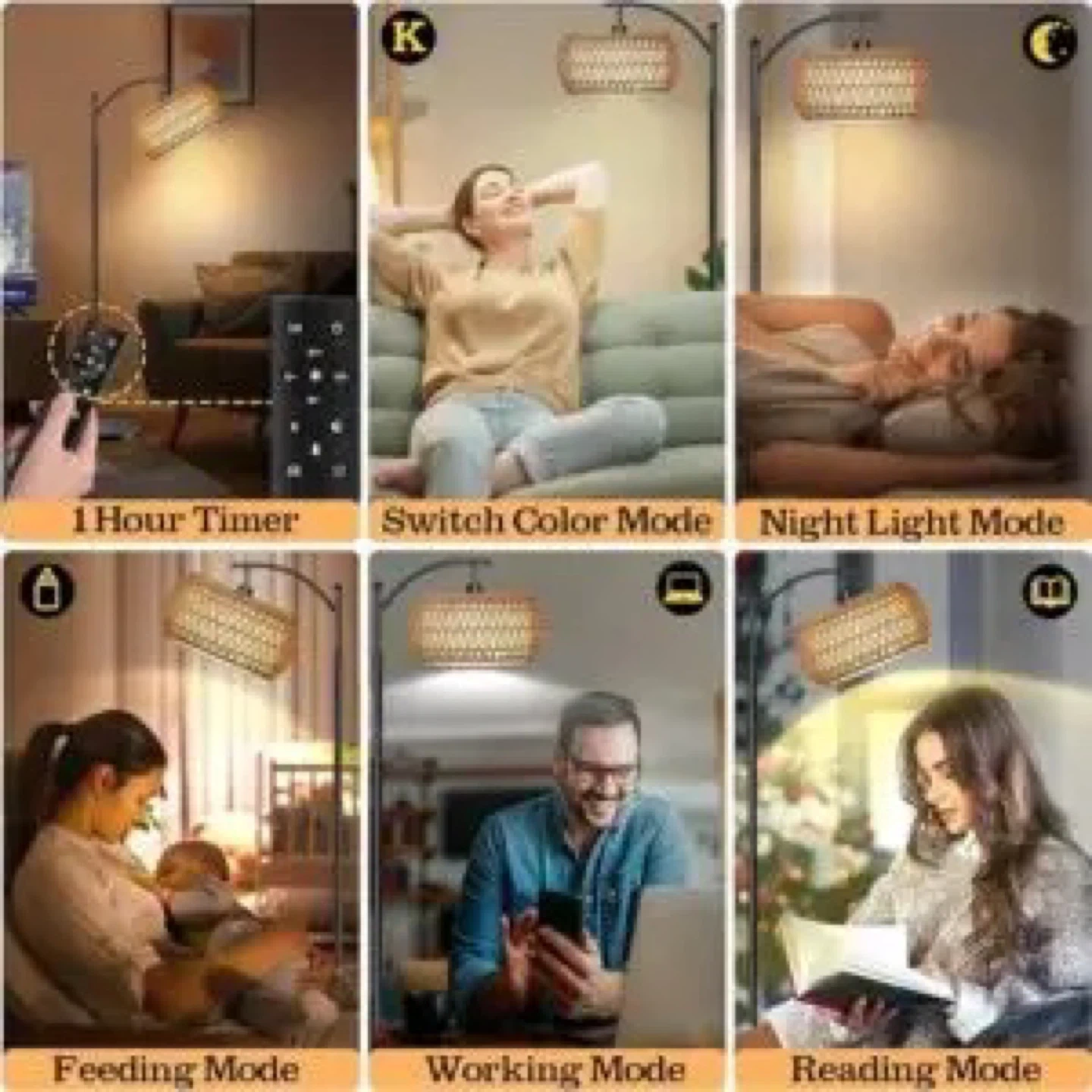 【Convenient Scene Modes & Timer】The standing lamp features a one-touch scene mode, allowing you to select the ideal lighting for reading, relaxation, or focused work. Additionally, the built-in 1-hour timer function automatically turns off the light, saving energy and ensuring a worry-free experience. With a remote control that works up to 50 feet, you can easily adjust brightness, turn the arc floor lamp on/off, and change settings while lounging on your sofa or bed.