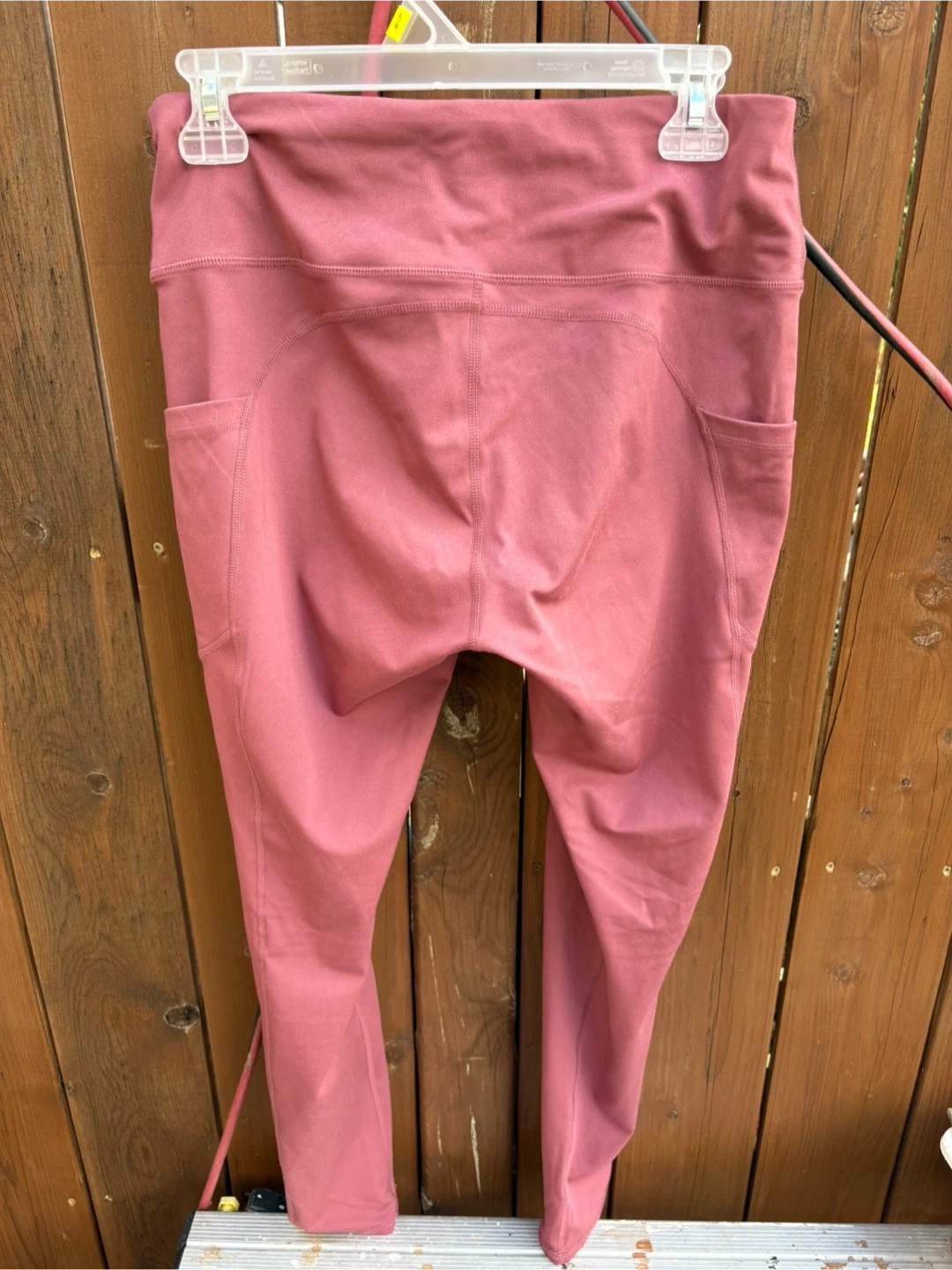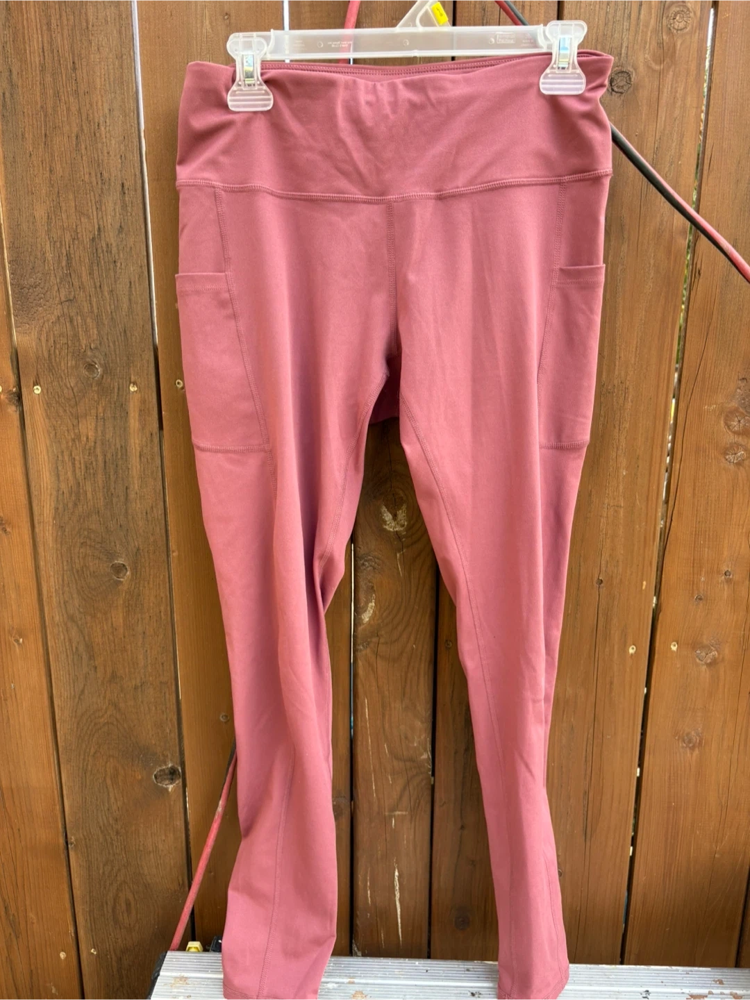 65Selling a pair of pink leggings in size large. They come with two side pockets and an inner pocket, perfect for keeping your phone or keys safe while you're on the go! Originally bought for $29.99 Barely worn! Seem like a small large!