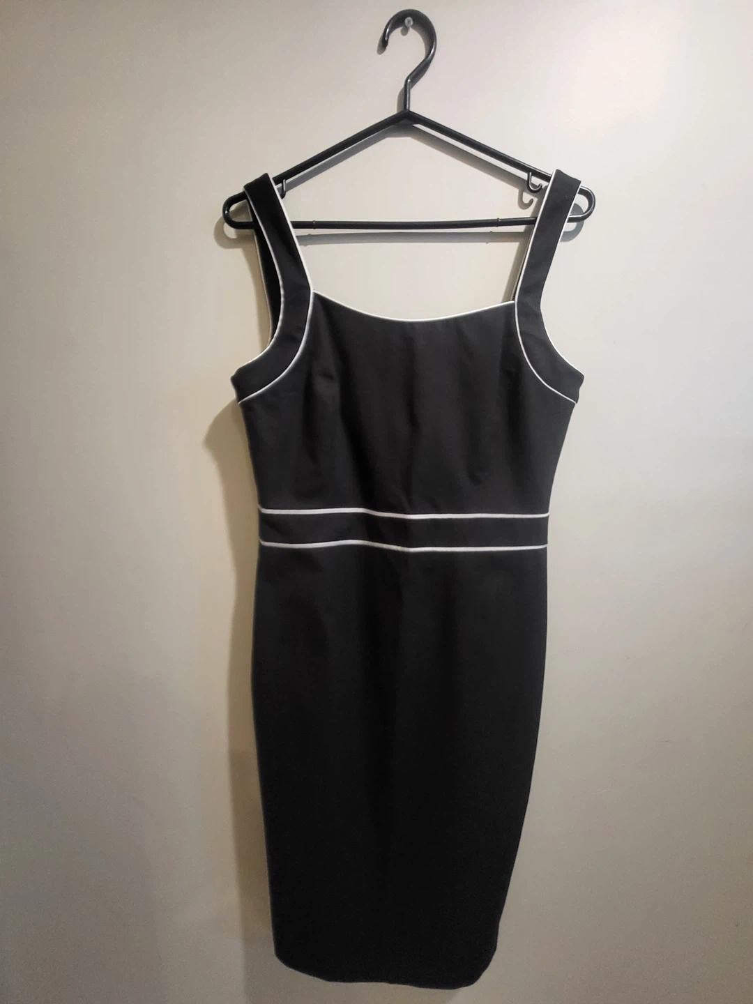 This is a Banana Republic black dress with white trim. It's in great condition and ready for a new home. The tag shows it was originally bought for $160.00