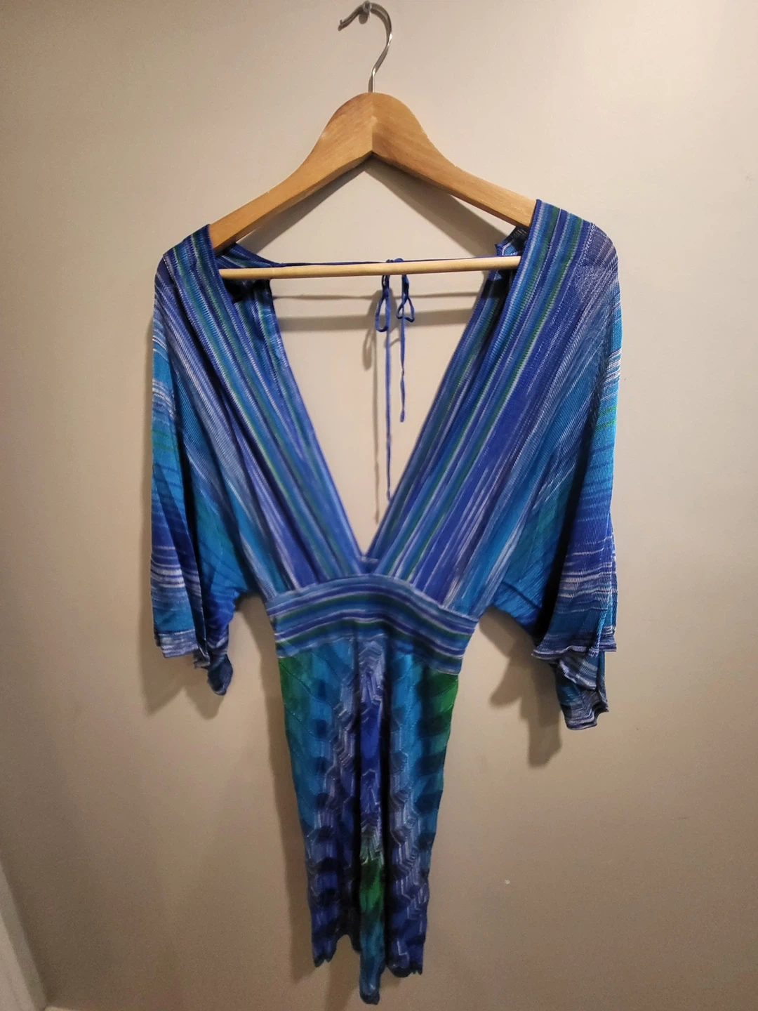 Selling a cute Marciano dress in size XS. It's made of 100% rayon and features a beautiful blue colour with a unique pattern. Beautiful quality.