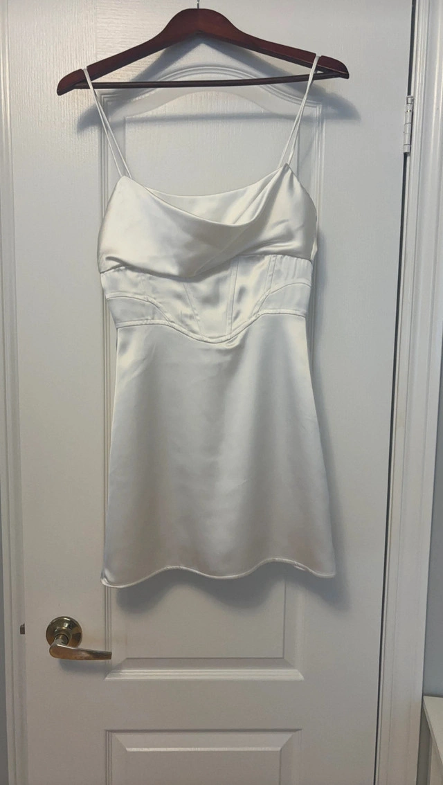 Selling a cute Zara white satin mini dress in size small! It's in great condition and perfect for a night out or a special occasion. Feel free to ask any questions! It’s a size small only worn once!