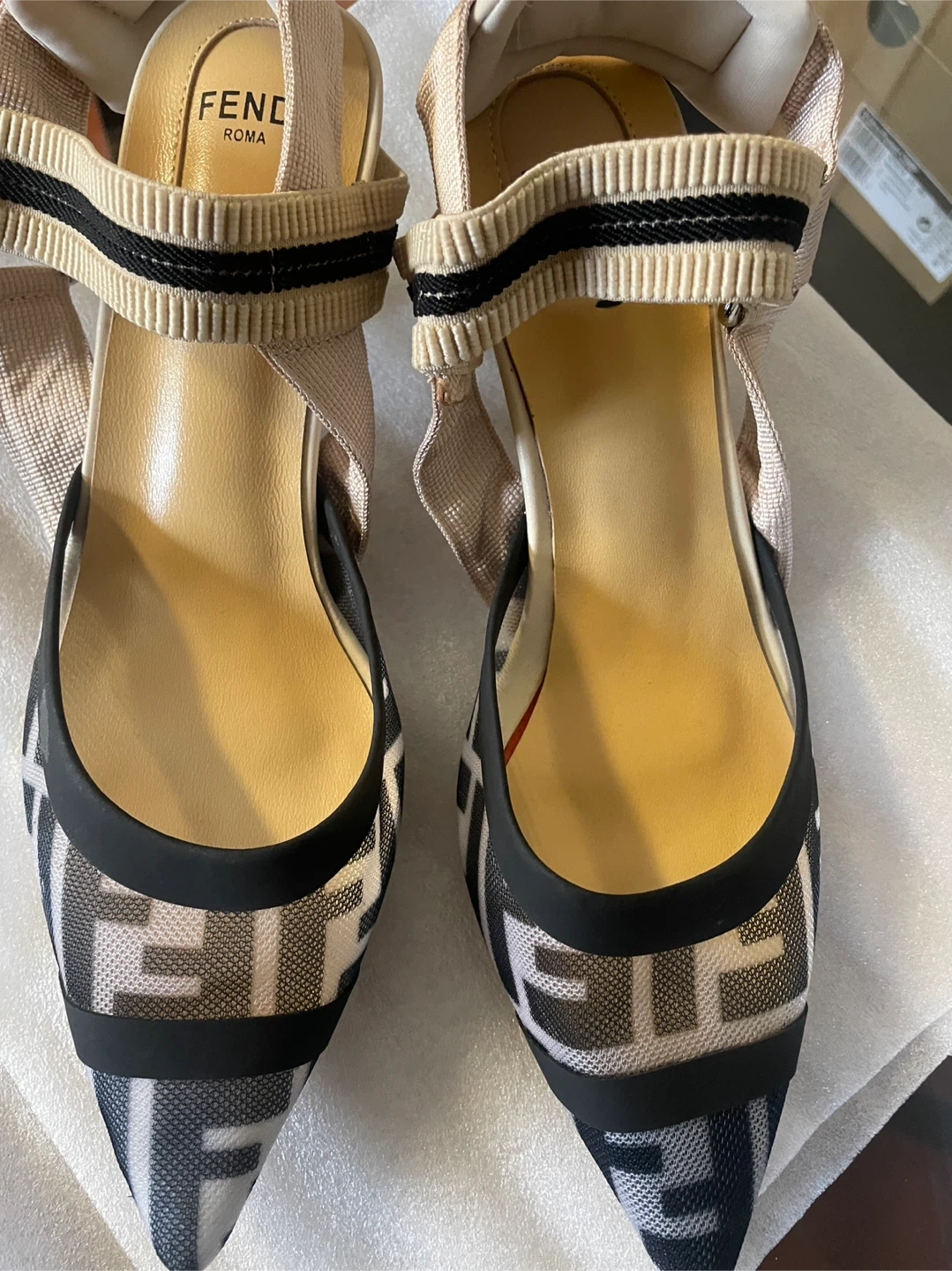 Selling a pair of Fendi Roma slingback heels. They are in great condition and feature the iconic Fendi logo pattern. Perfect for adding a touch of luxury to your outfit!pick up only thanks 189$ off 65$