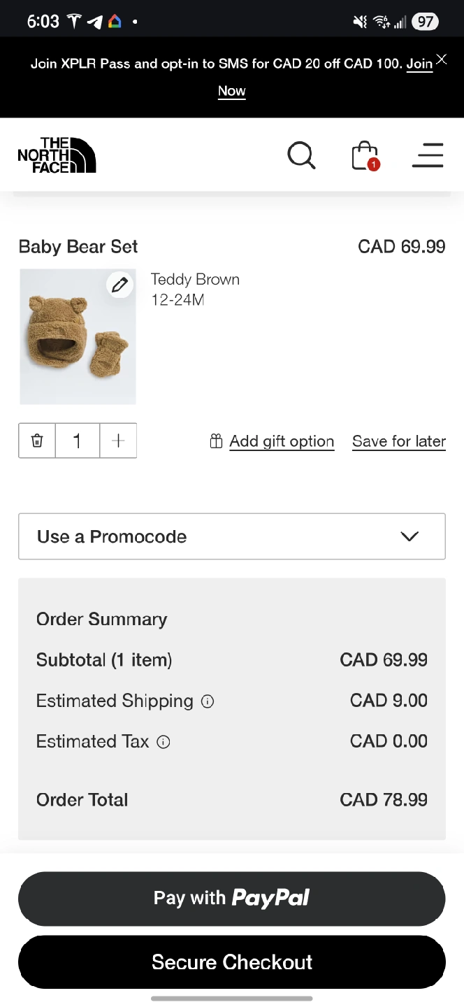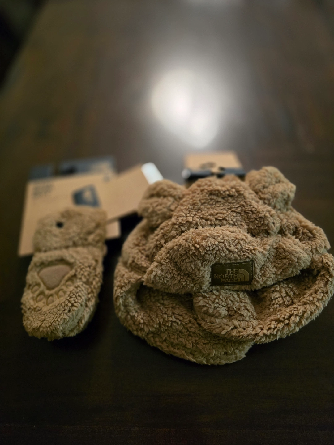 The North Face Baby Bear Set in Teddy Brown, sized 12-24M. This adorable set includes a hat and mittens, perfect for keeping your little one warm and cozy. Originally bought for $69.99!