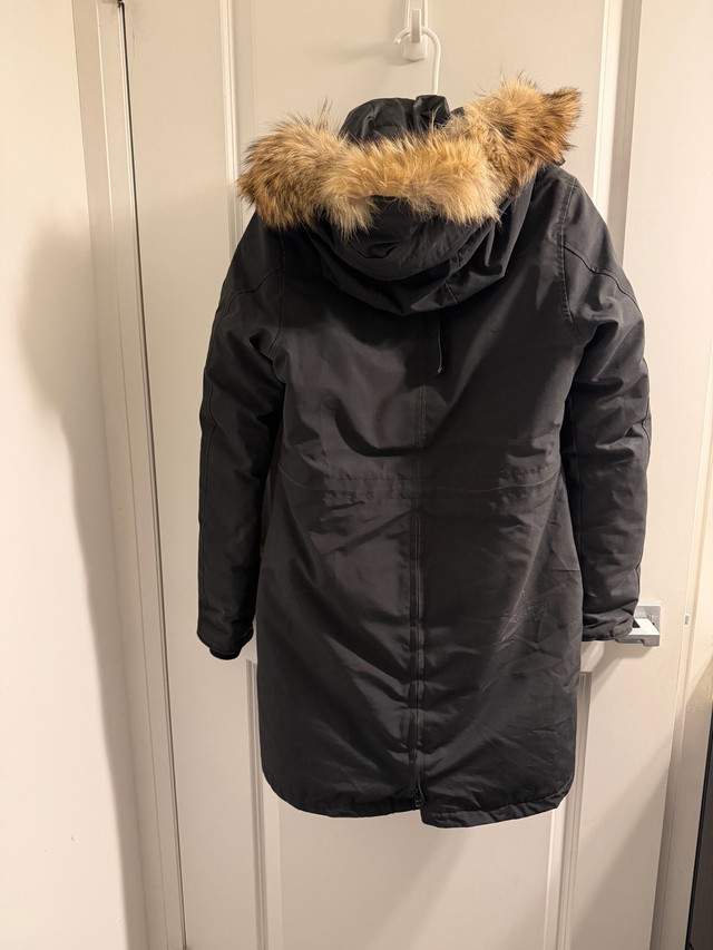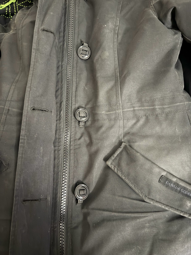 I'm selling a used Canada Goose Black parka, perfect for braving the Canadian winters! This stylish and functional coat features a durable outer shell and insulated lining to keep you warm and cozy.