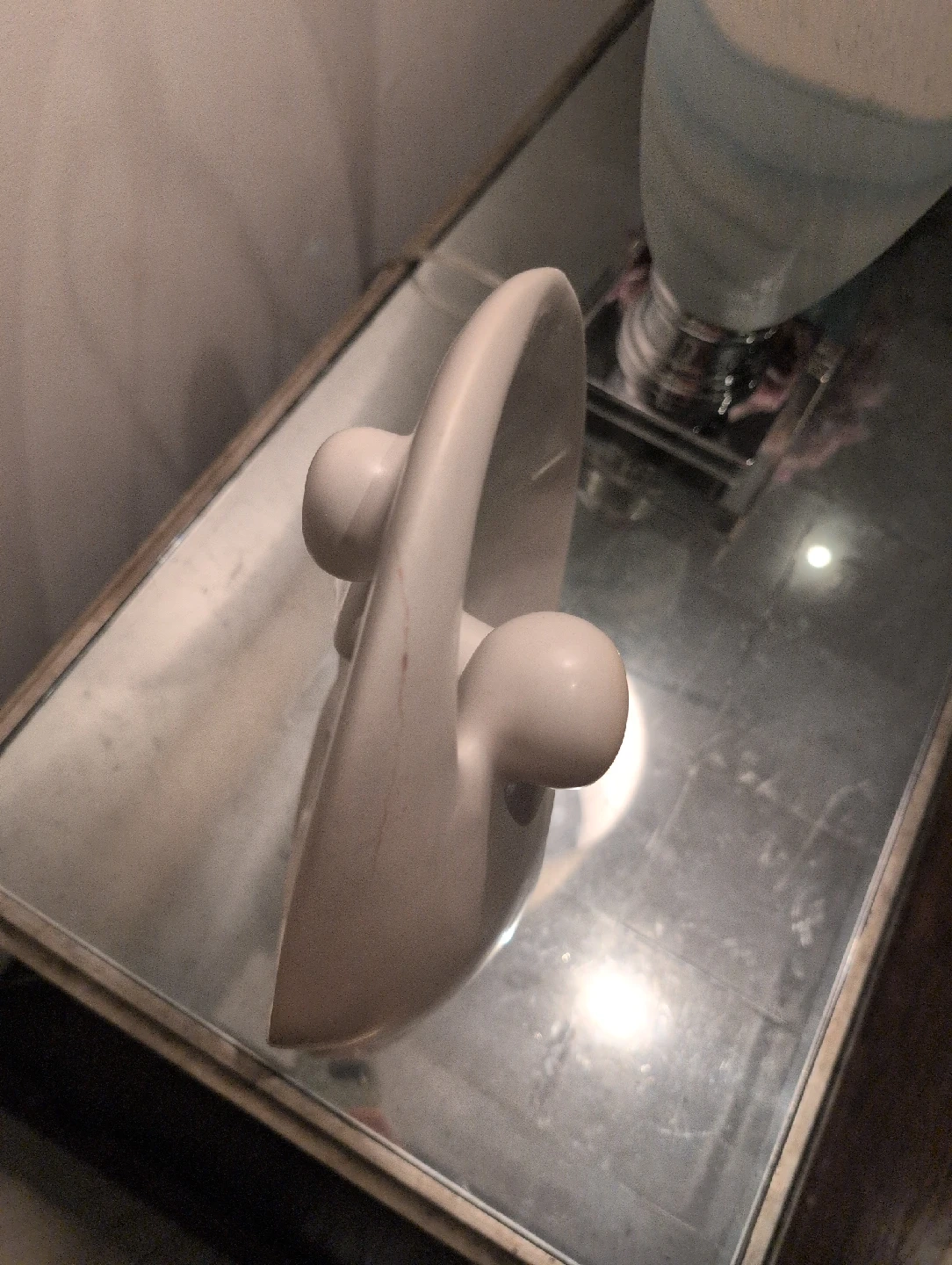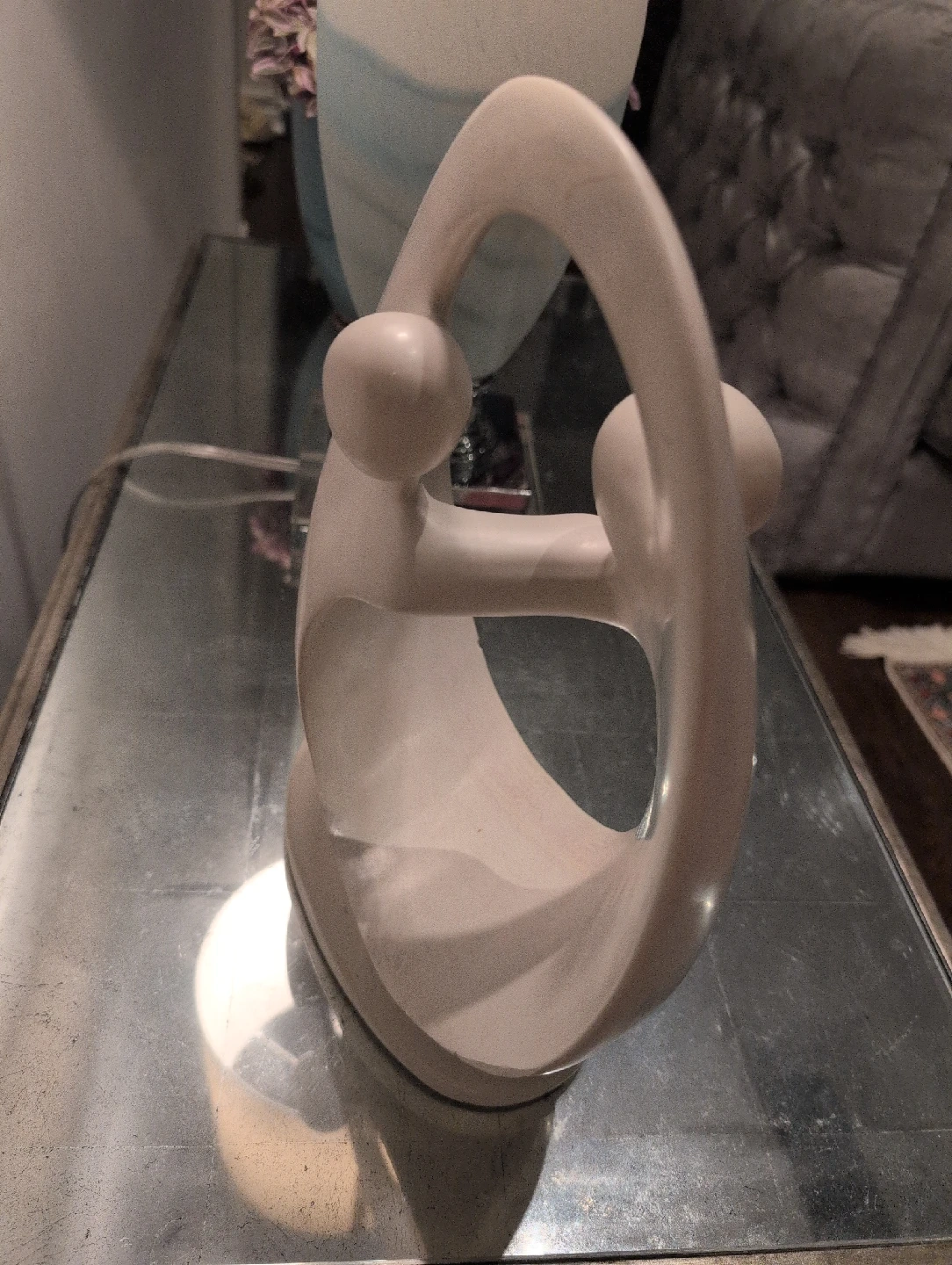 A unique abstract sculpture, perfect for adding a touch of modern art to your home! It's made of stone and features a smooth, rounded design. It has a few minor scratches. it's pretty heavy.