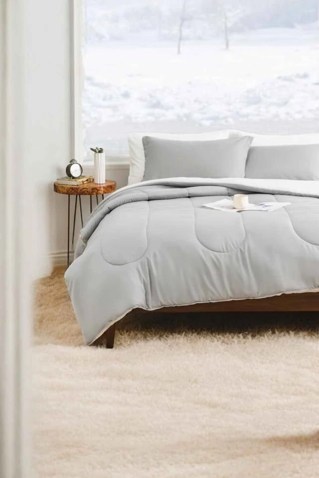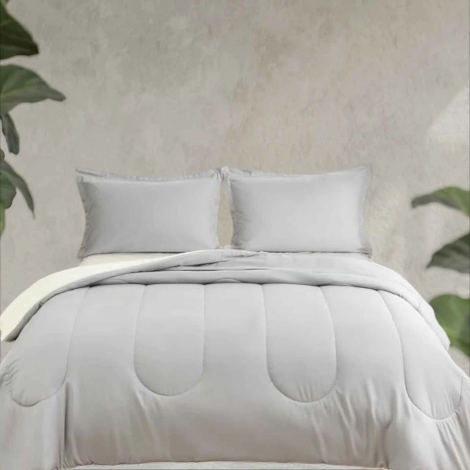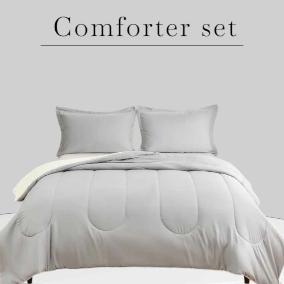 30King Comforter Set reversible– Grey (Brand New) Size: King Colour: Cool-toned Grey Material: Microfiber Style: Minimalist | Contemporary This soft king-size comforter set is brand new and adds a sleek, calming touch to your bedroom with its modern grey tone and clean design. The microfiber filling offers cloud like comfort year round, perfect for those who want cozy warmth without the bulk. This king comforter comes with 2 pillow shams as a 3 piece set. Easy to care for machine washable Designed for comfort, this set is ideal for creating a serene, hotel inspired bedroom look. Brand new and never used Price is firm – no low ballers Thanks for coming by.
