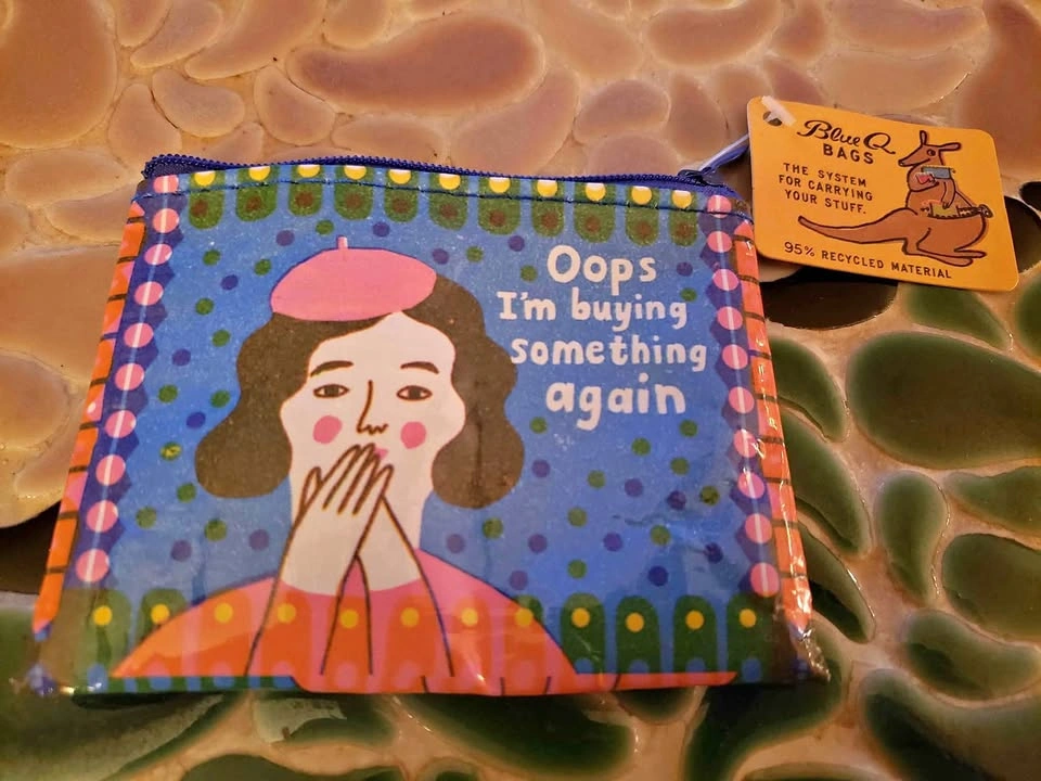 New with tag. Coin purse with zipper by Blue Q Bags - "The system for carrying your stuff." 95% recycled materials. 3 inches by 4 inches. Picture is on both sides.