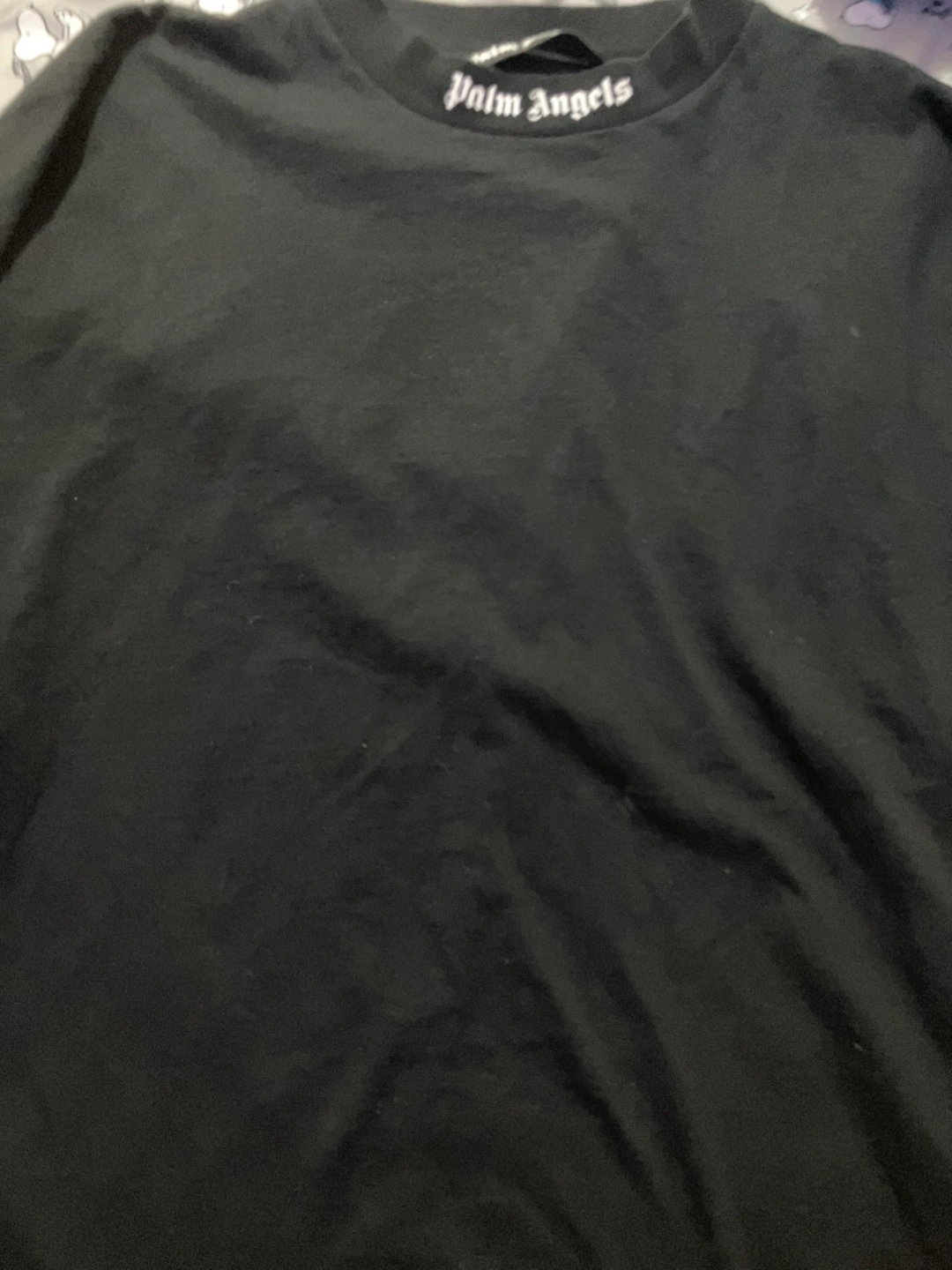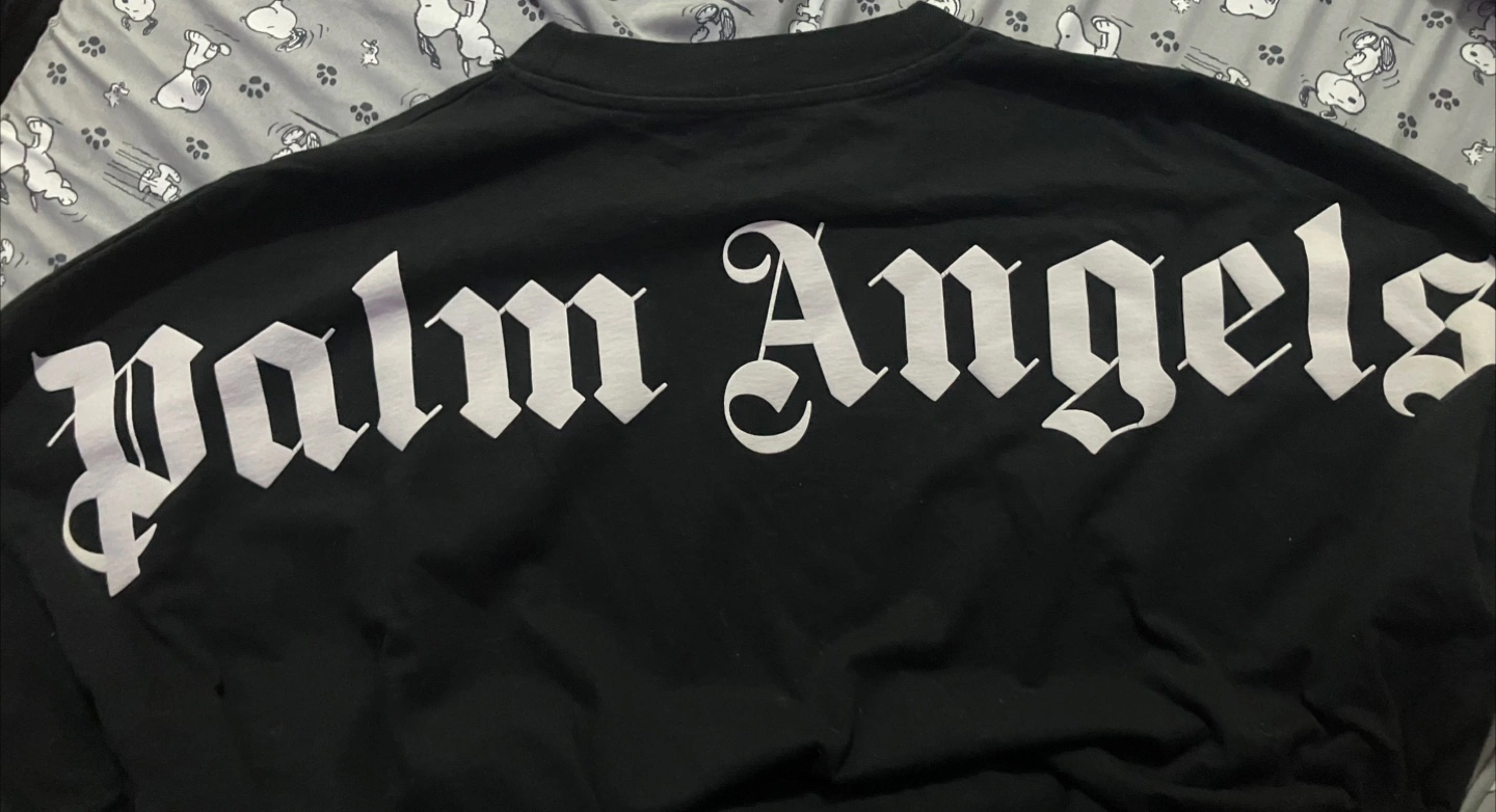 Selling a black Palm Angels t-shirt. The back has the Palm Angels logo in white lettering.