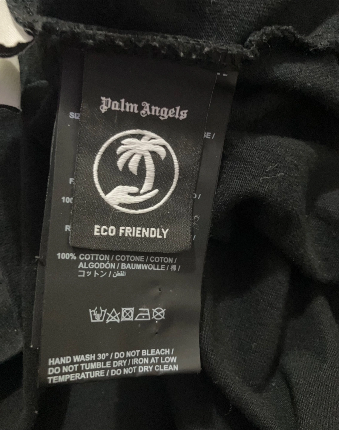 Selling a black Palm Angels t-shirt. The back has the Palm Angels logo in white lettering.