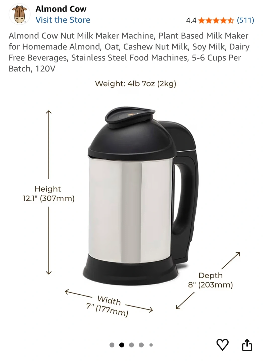 Selling an Almond Cow plant-based milk maker! It makes milk in under a minute, saving you time and effort.