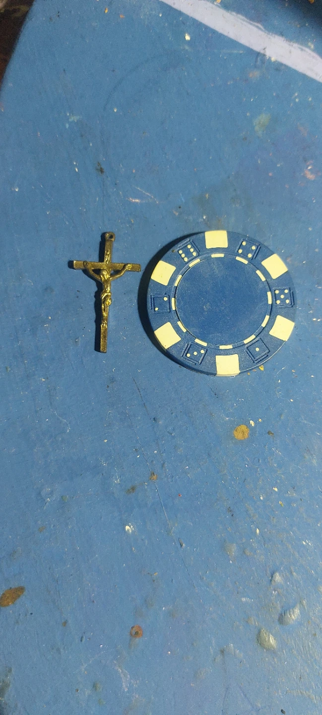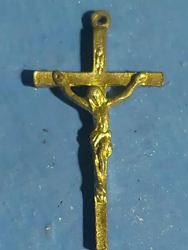 Selling a vintage crucifix pendant. It's a classic piece in good condition, perfect for anyone interested in religious jewelry or vintage collectibles. Feel free to message me if you're interested!