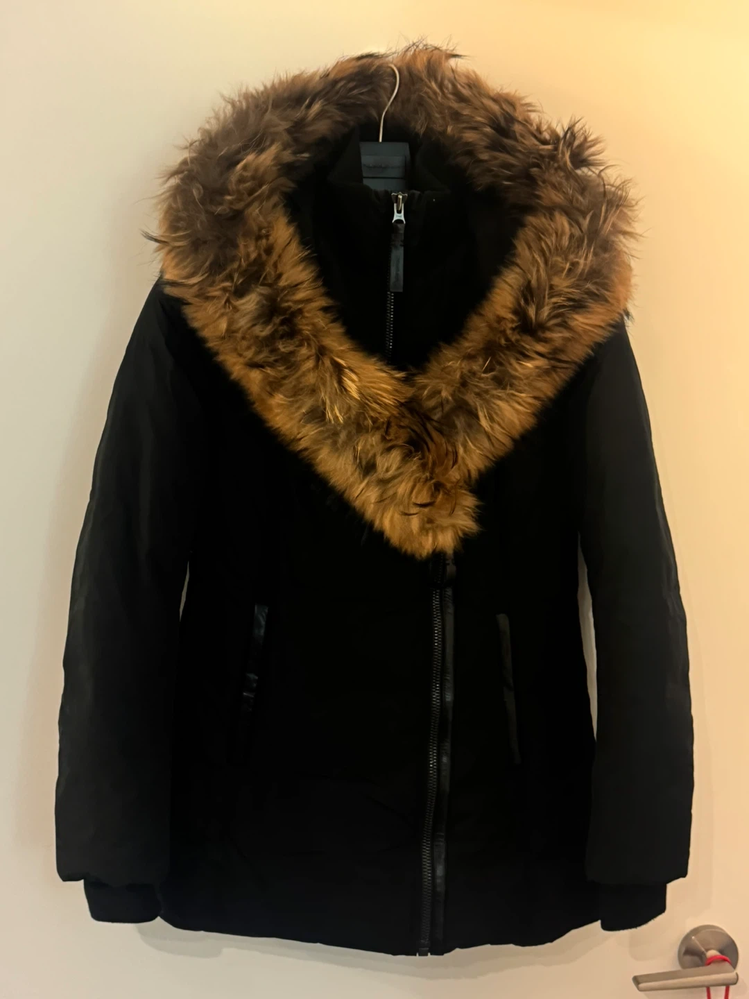 Selling a Mackage Adali down winter coat. It's a stylish and warm coat, perfect for the Canadian winter! The coat features a beautiful fur-trimmed hood and an asymmetrical zipper closure.