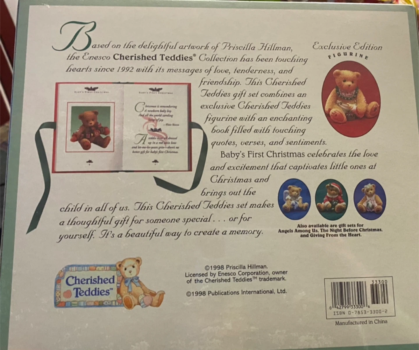 Selling a Cherished Teddies 'Baby's First Christmas' book and figurine gift set! This exclusive edition figurine comes with an enchanting book filled with touching quotes, verses, and sentiments. It's a beautiful way to create a memory or a thoughtful gift for someone special