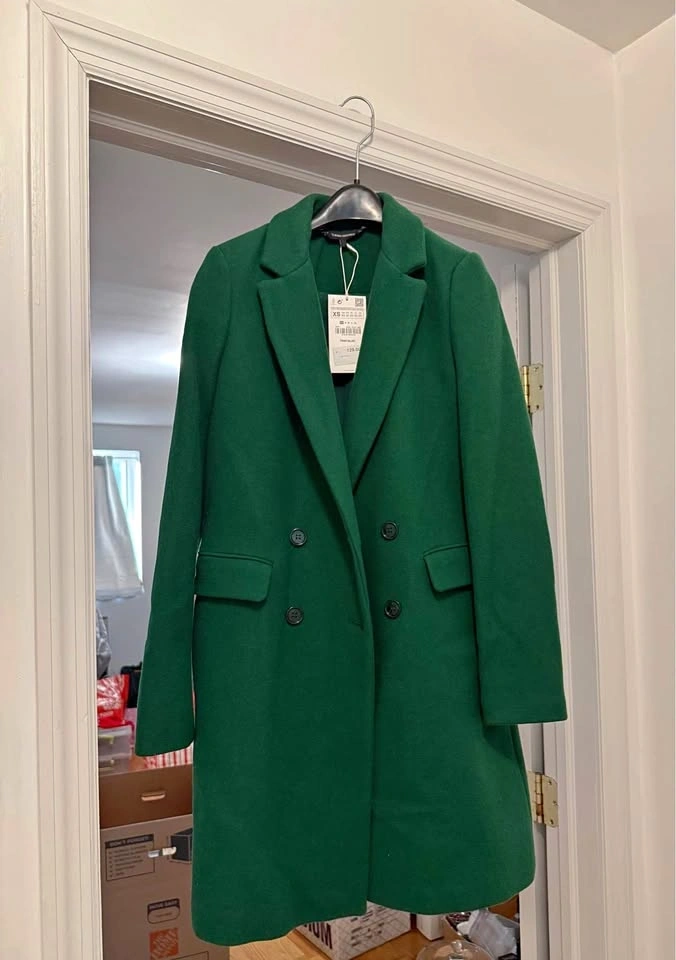 Beautiful vibrant green color wool coat. Never worn, Brand New with tags. Asking $35. Pick up in LIC.