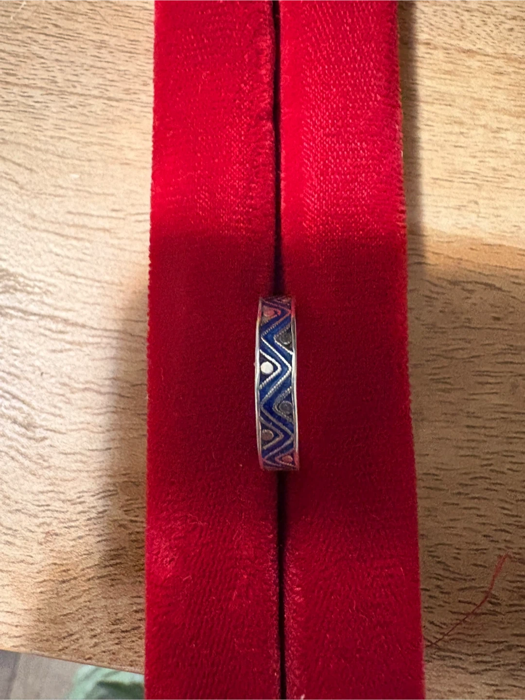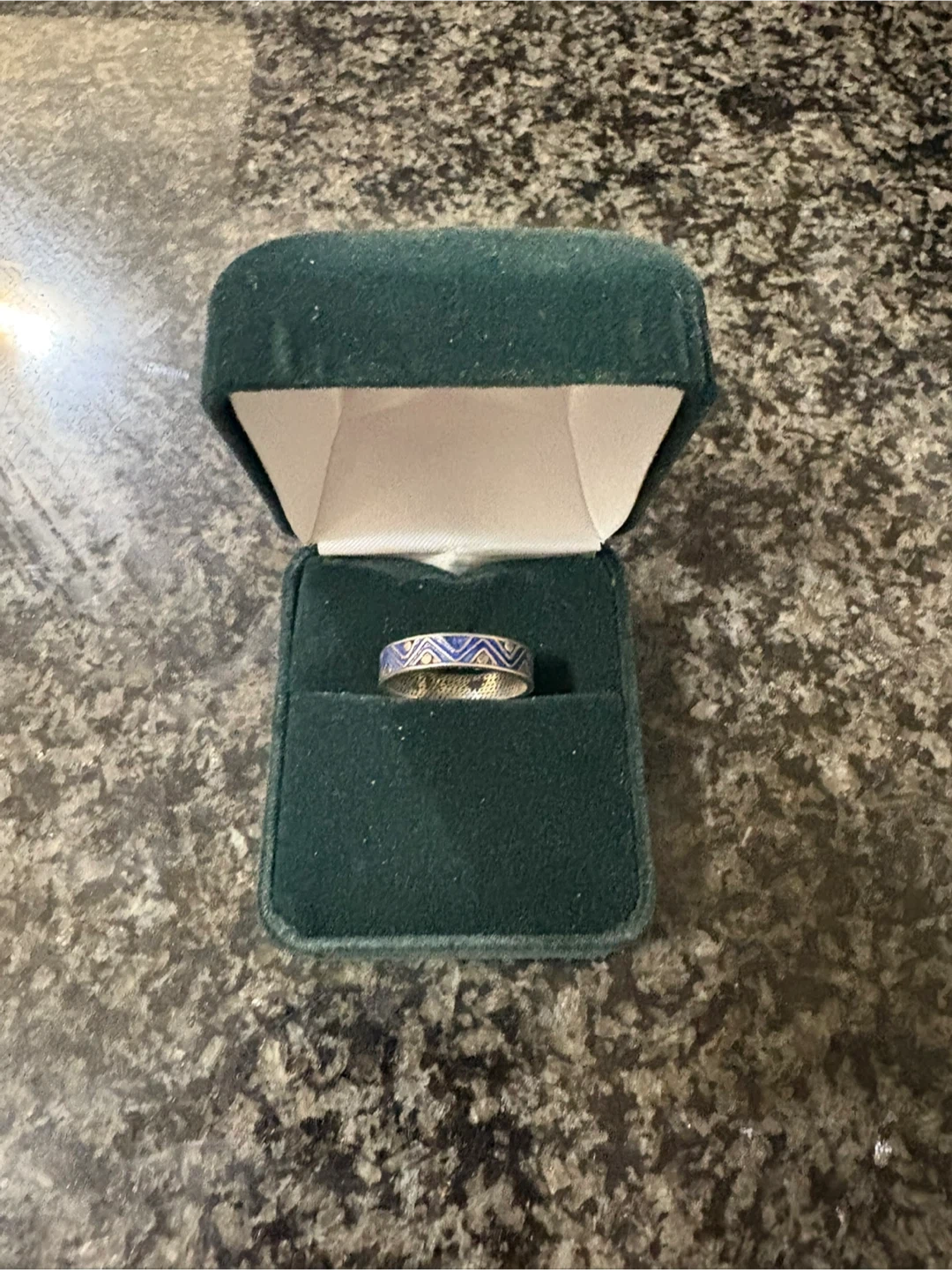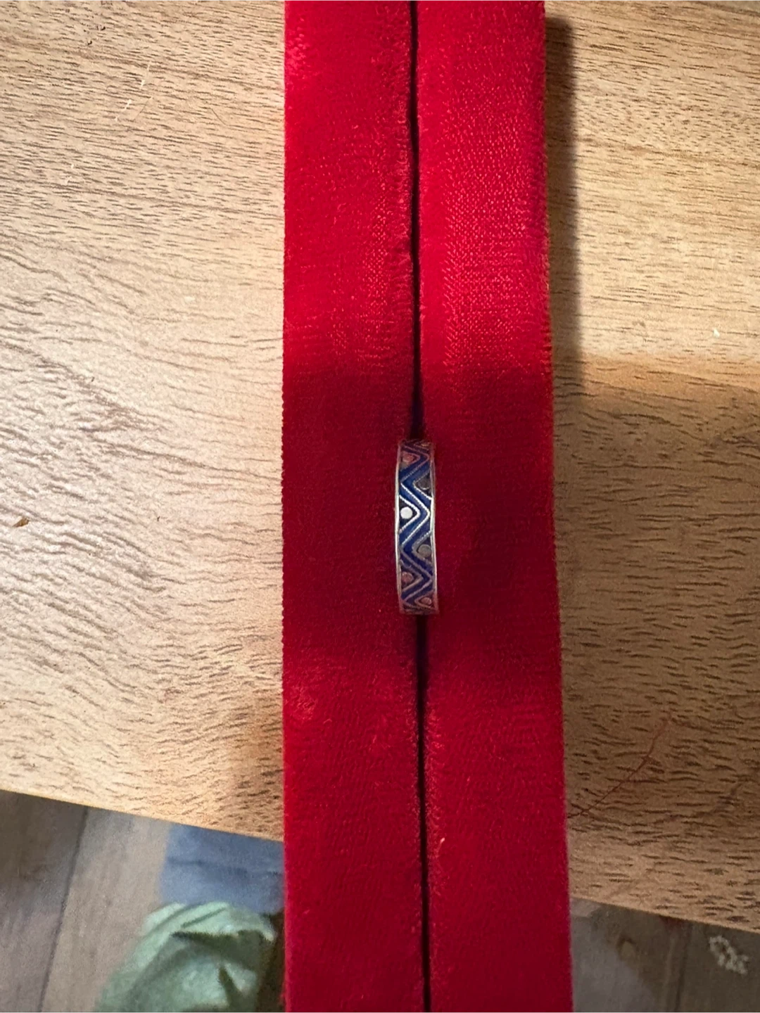 84Brand new Beautiful silver ring with a unique blue enamel design. It's in great condition and comes with its original box. Perfect for adding a touch of elegance to any outfit! Perfect for gift