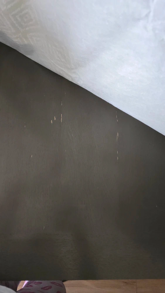Selling a dining table with four chairs. The set is in minor wear and tear (as shown) condition and features a neutral grey colour that would fit well in any dining space. Perfect for a small family or apartment!