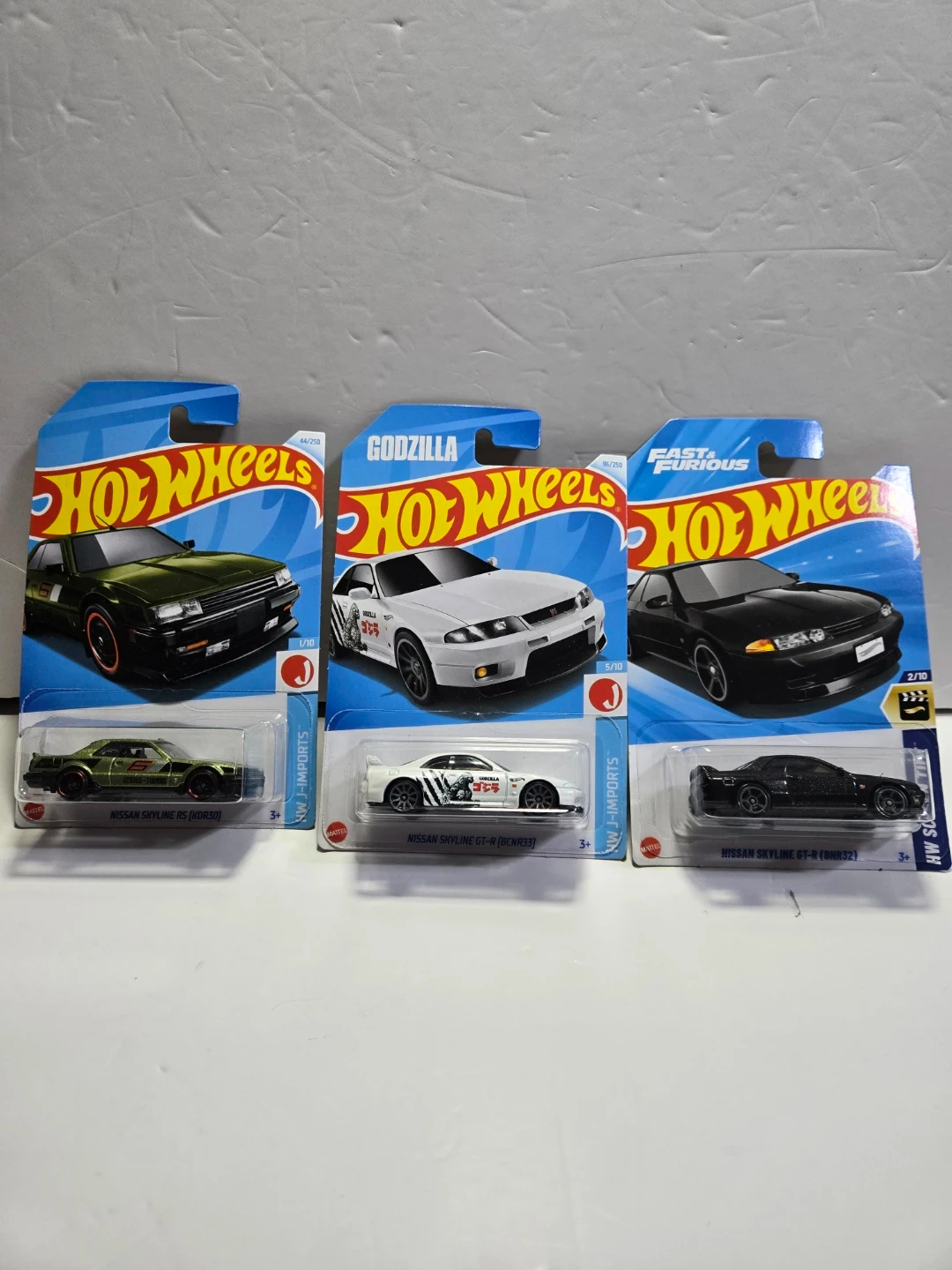Selling a set of Hot Wheels Nissan Skyline GT-R diecast cars! They are still in their original packaging and ready for a new home. Perfect for collectors or kids who love cars!