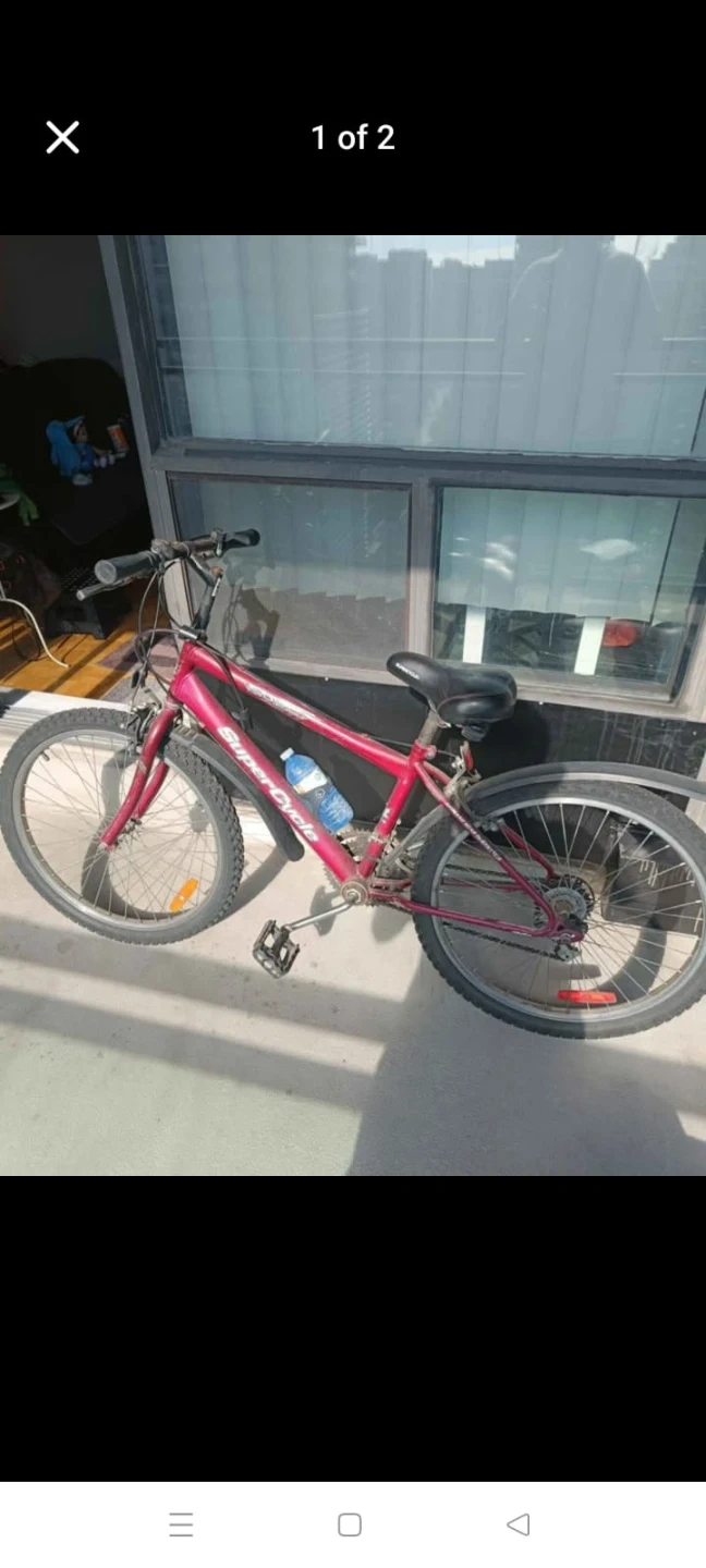 Buy & SellSupercycle Mountain Bike - 24 inchSupercycle Mountain Bike - 24 inch$45Selling a Supercycle mountain bike 24 inch.. It's red and ready for some adventures! Manual air pump is also included.WHERE TO MEETsheppard and yongeView MapSELLERDeekshaWillowdale E474 reviews0 chats·1 favorites·14 viewsSEND CHAT TO SELLERHi Deeksha! I’m interested in your listing.Hi Deeksha! I’m interested in your listing.Get the Karrot app to chatSign In to chat