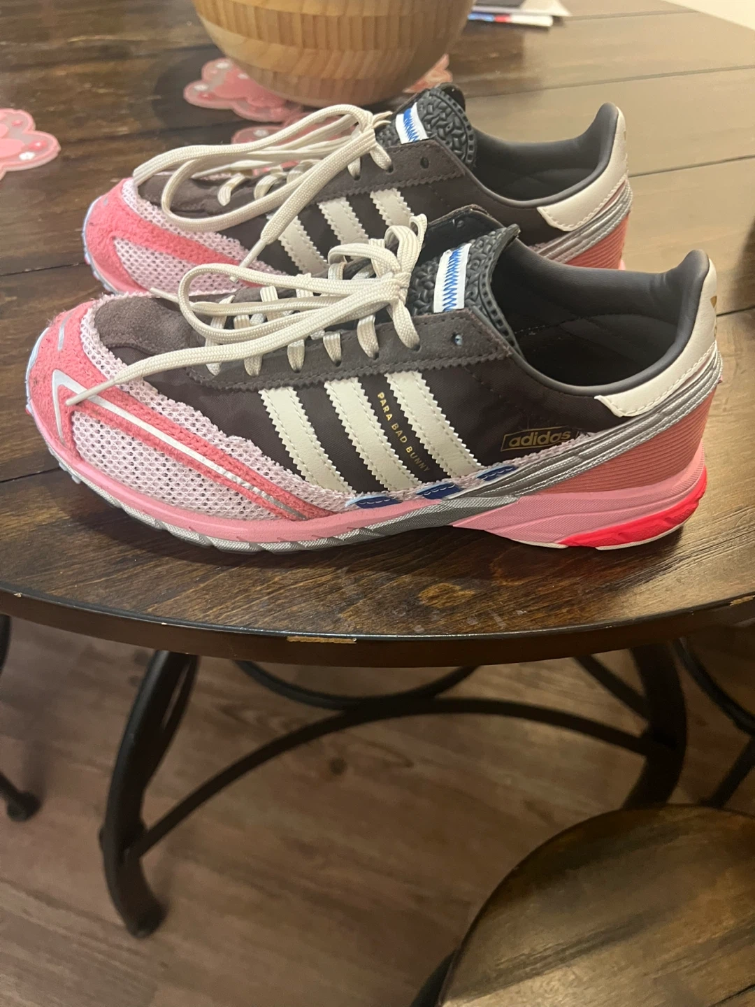 New Adidas Adizero SL 72 Bad Bunny Brown Clear Pink shoes size M 6 or W 7! Bought them and were too small. These stylish sneakers feature the iconic Adidas stripes with a unique Para Bad Bunny design. The shoes are a mix of brown, white, pink, and blue, making them a standout addition to any wardrobe. Comes with the original box, package and extra pair of blue cordons