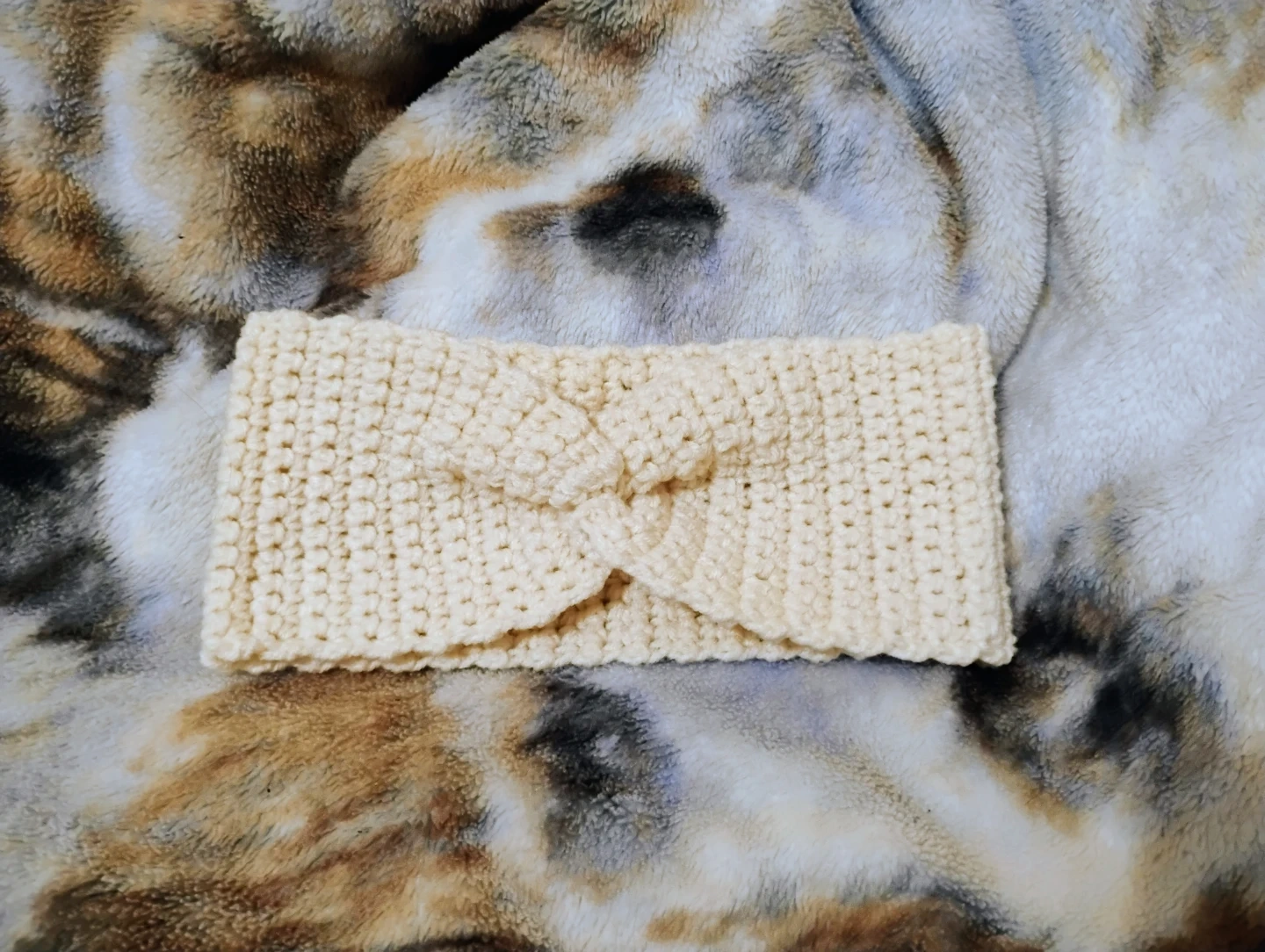 I'm selling a handmade crocheted headband. It's a lovely cream colour and has a cute twisted knot design. Perfect for keeping your ears warm on chilly days! They are perfect Christmas gifts