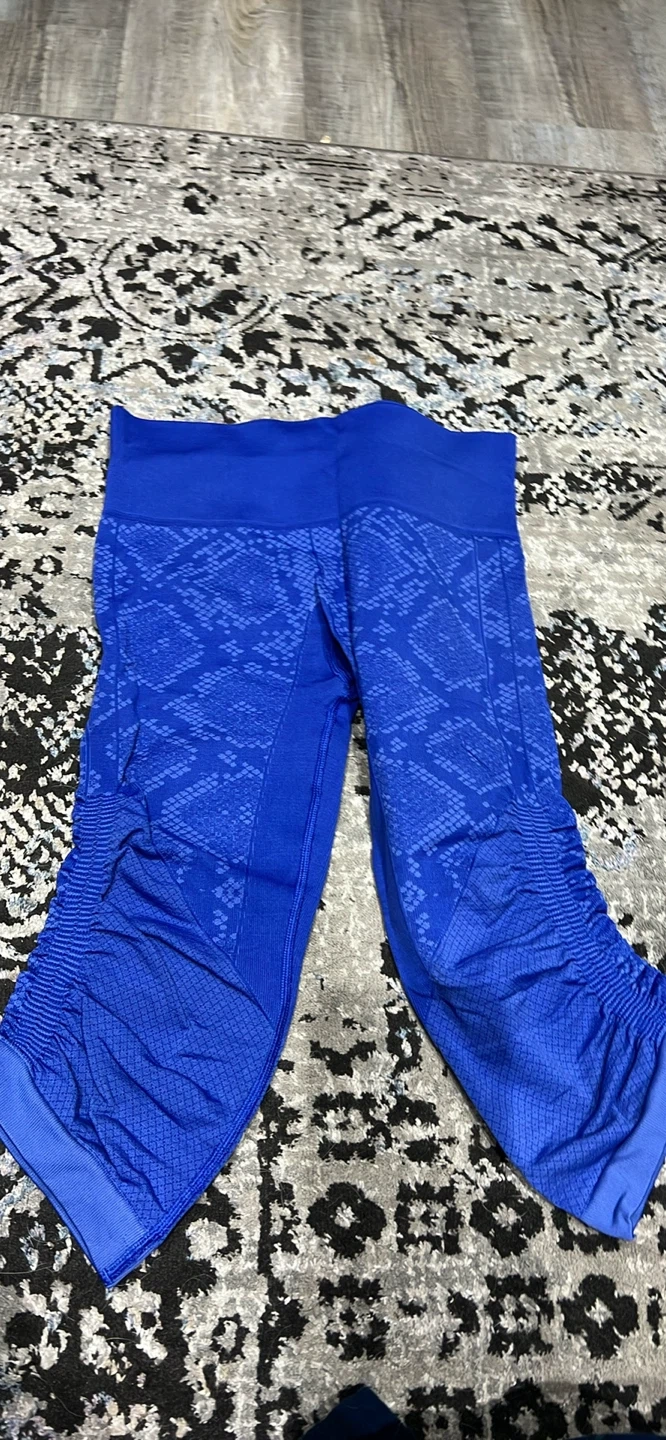 10Selling a pair of Lululemon capri leggings in a vibrant blue! They're in great condition and ready for a new home. Perfect for workouts or just lounging around