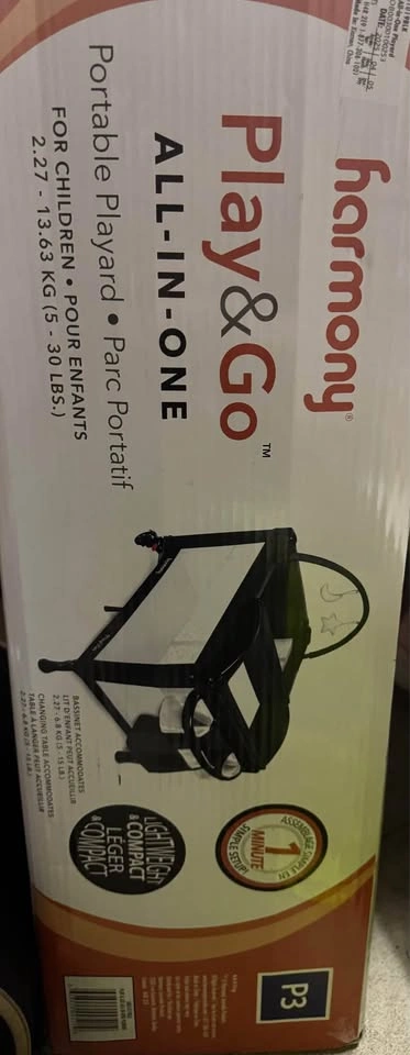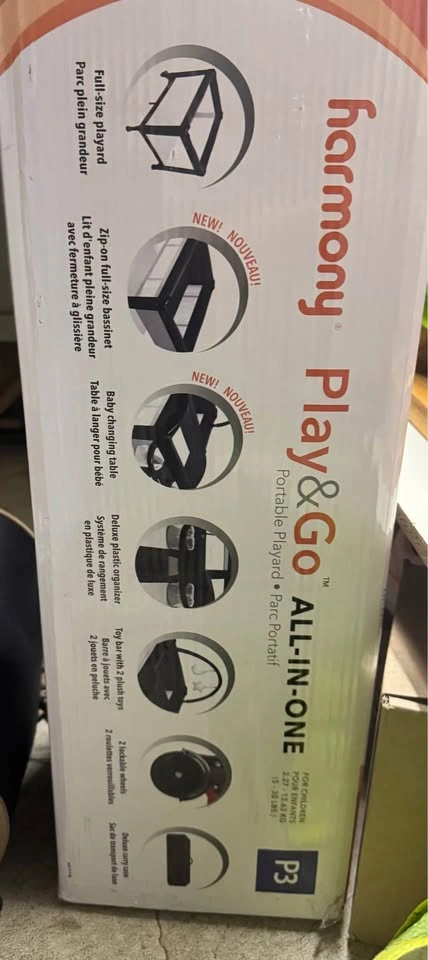 Selling a Harmony Play & Go Portable Playard that was opened only to check but never used. It was received as a gift, but we already have a crib for our baby.