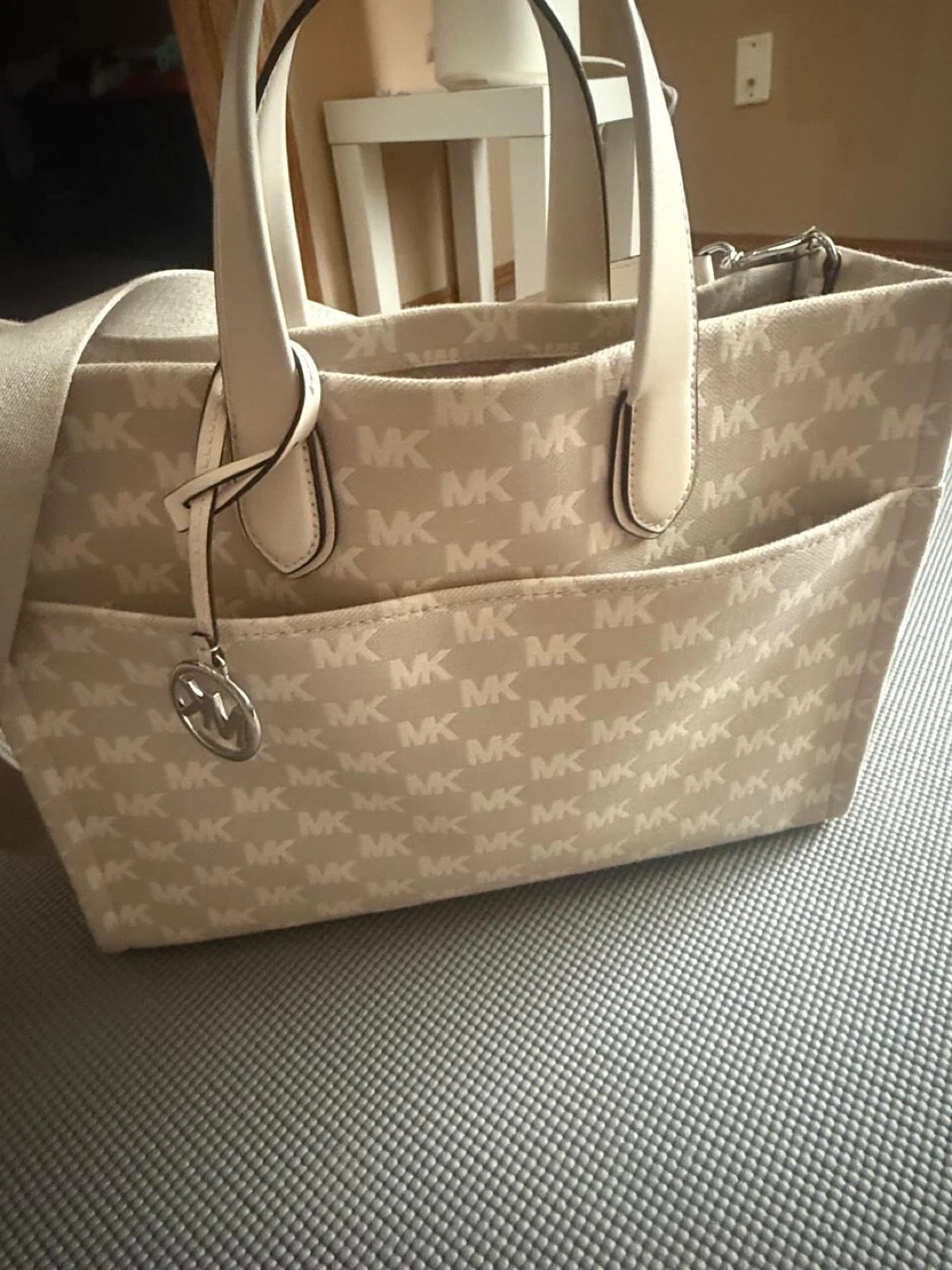 Selling a Michael Kors tote bag! It's in great condition and has a beige colour with the MK logo pattern all over. Perfect for everyday use!