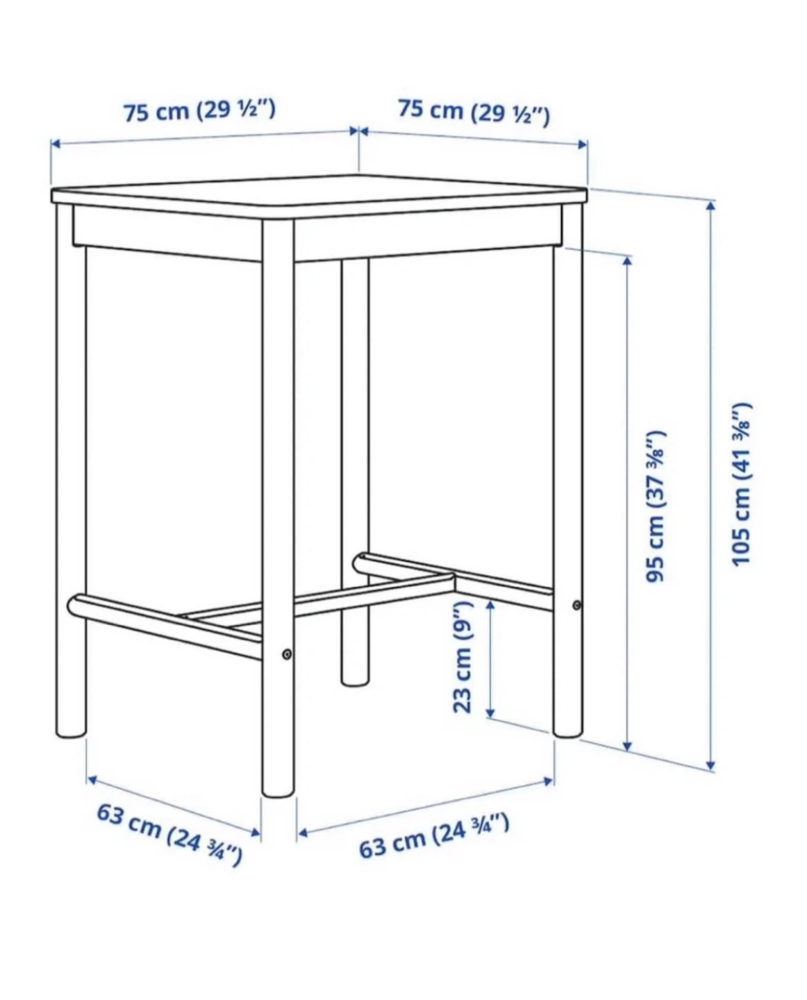 Selling an IKEA Franklin bar table in light wood. The table dimensions are 75cm x 75cm (29 1/2") and the height is 105cm (41 3/8").