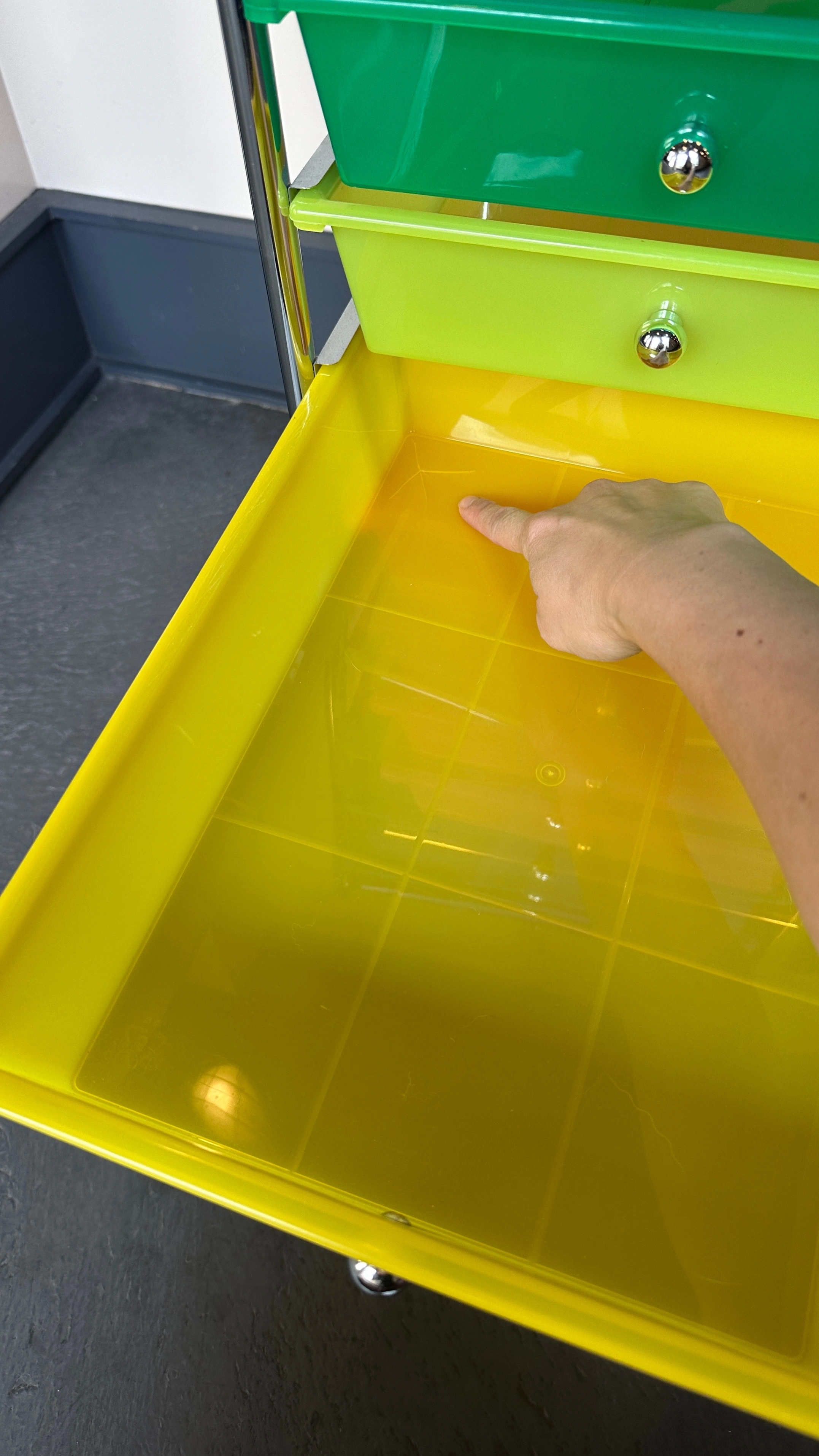 USED condition so plastic drawers and mesh metal top have light scuffs on the inside and outside, but still perfectly usable!