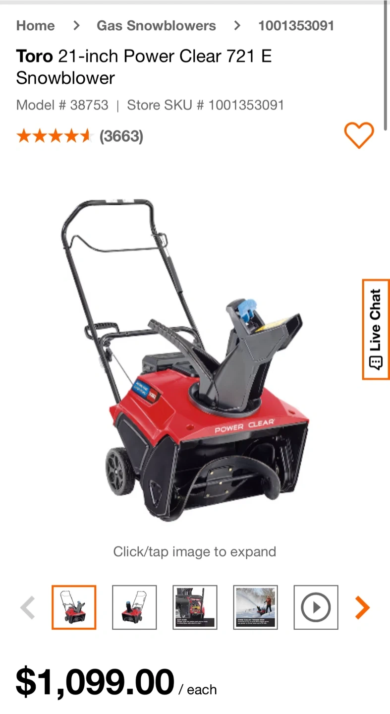 Selling a Toro Power Clear snowblower! It's in great shape and ready to help you tackle those snowy sidewalks and driveways. This is the 21-inch Power Clear 721 E model. Retails for $1,099 plus tax