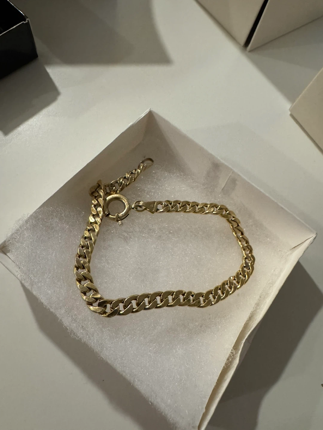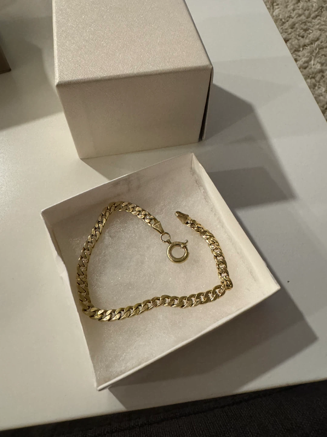 Selling a gold chain bracelet! It comes with its box. It's in great condition and ready for a new owner