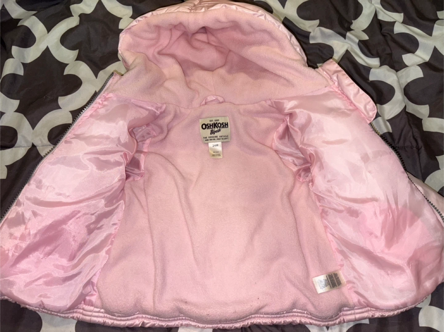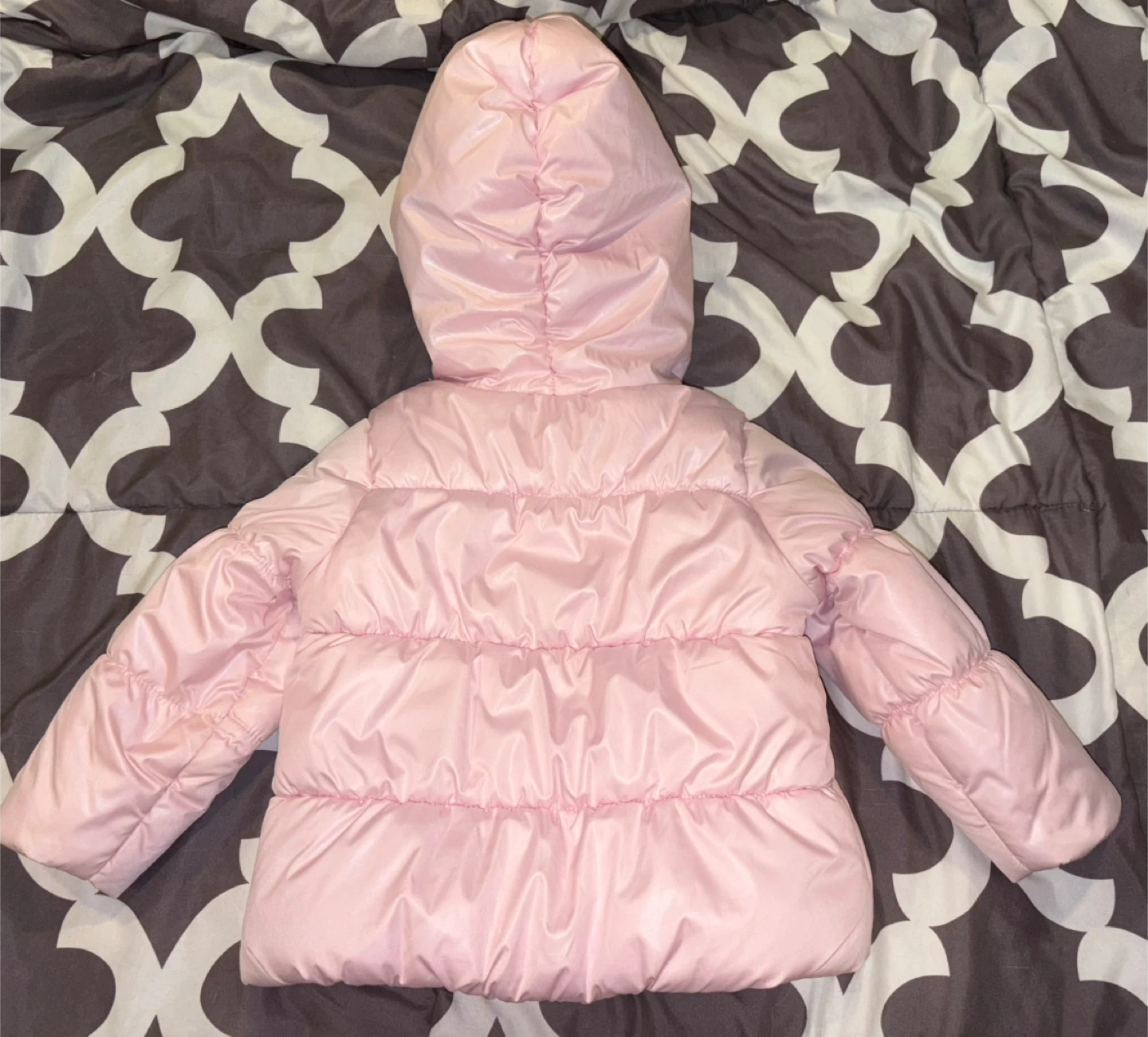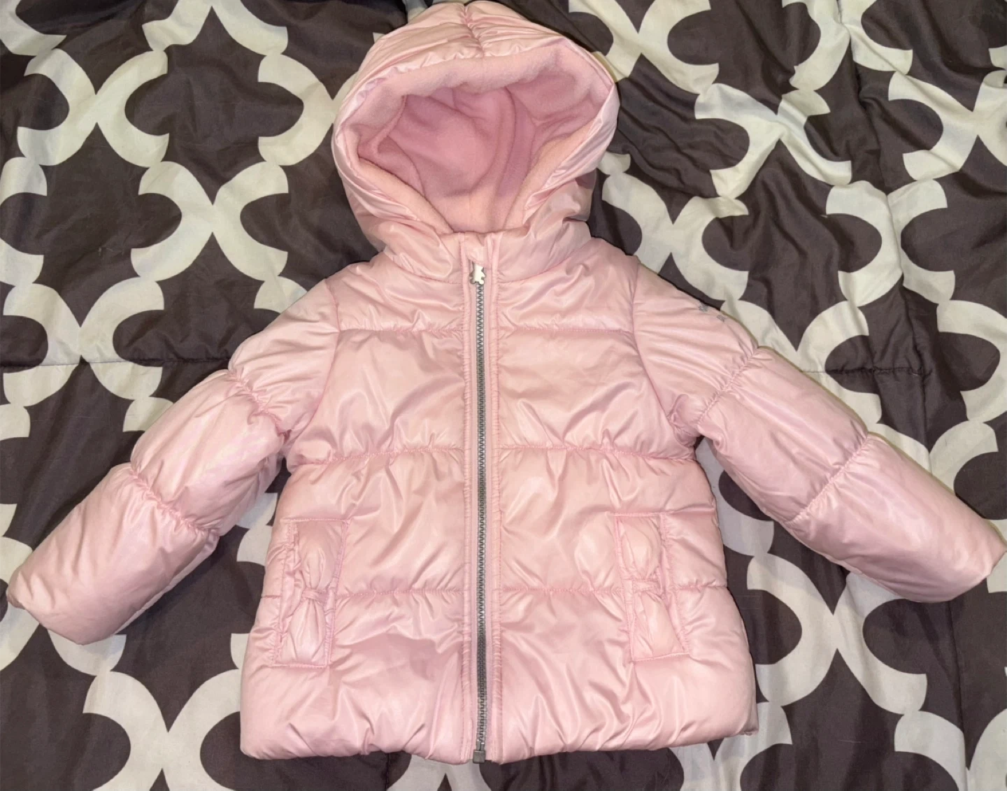 65A cozy and cute pink puffer jacket from OshKosh B'gosh! It's a size 24M, perfect for keeping your little one warm. This jacket features a hood and a full zipper for easy wear. Great for those chilly Canadian days! It’s about 7 years old and was my nieces but it’s in good condition and no wear and tear that I can tell! The money would be sent to my sister