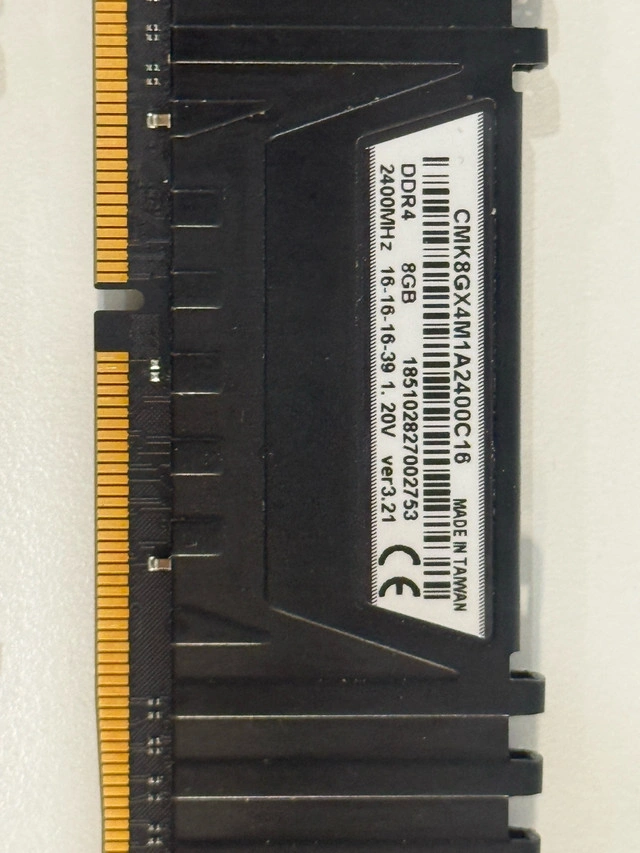 20Corsair Vengeance LPX 16GB DDR4 kit, typically two 8GB modules (2x8GB). General specs: Capacity: 16GB (2x8GB), Type: DDR4, Speed: 2400MHz, CAS Latency (CL): Varies by speed, e.g., CL14, CL15, CL16, CL18, Voltage: 1.2V, XMP Support: Yes, Intel XMP 2.0, Cooling: Aluminum heat spreader (low-profile design), Color: Black. Selling because I downgraded and don’t need it anymore. Cash only.