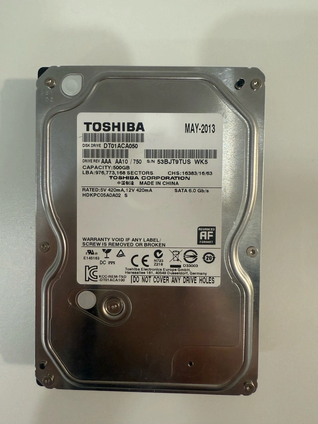 20500 Gigs HDD from Toshiba. Used on a system a while ago, never used since then. Cash only.