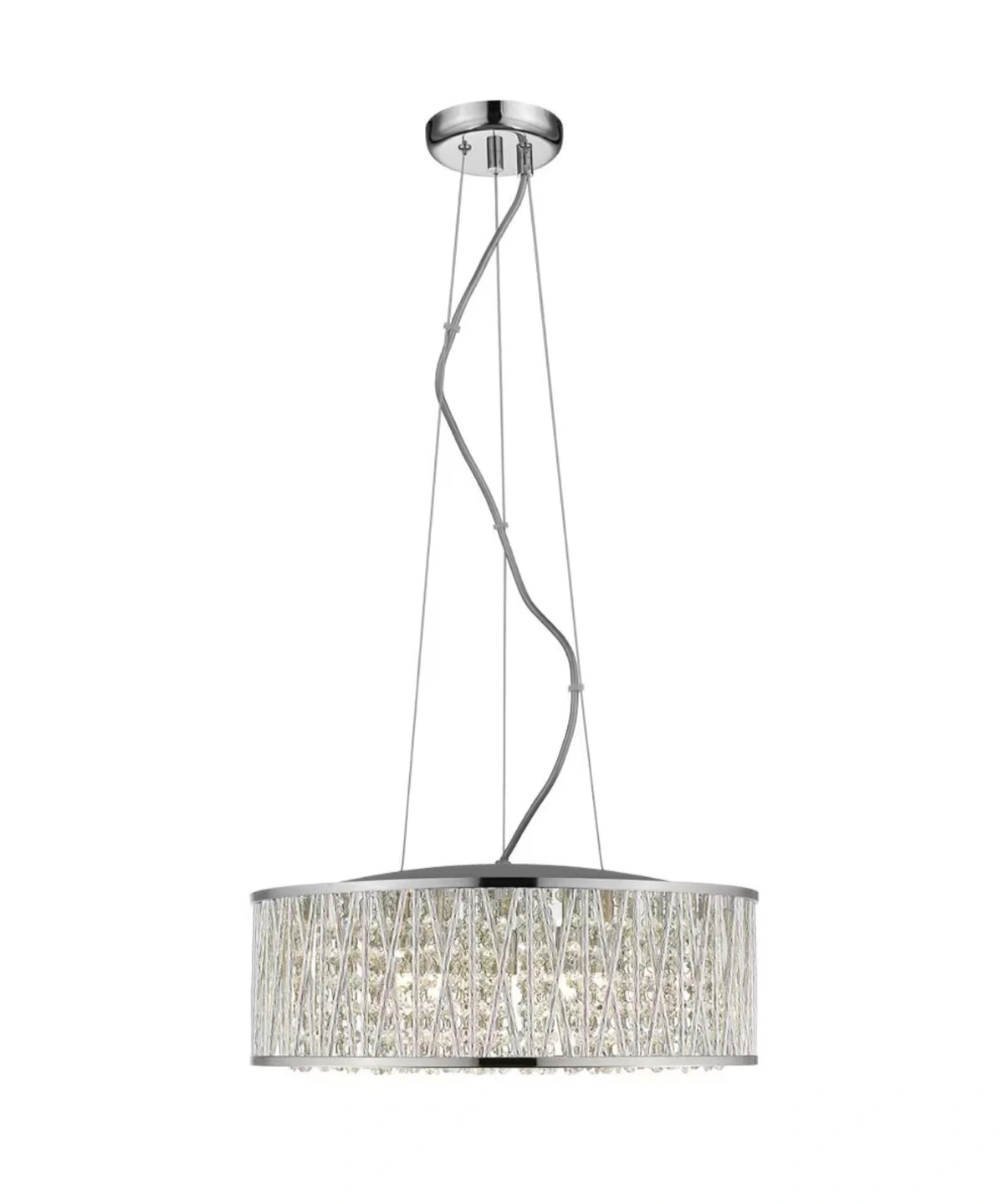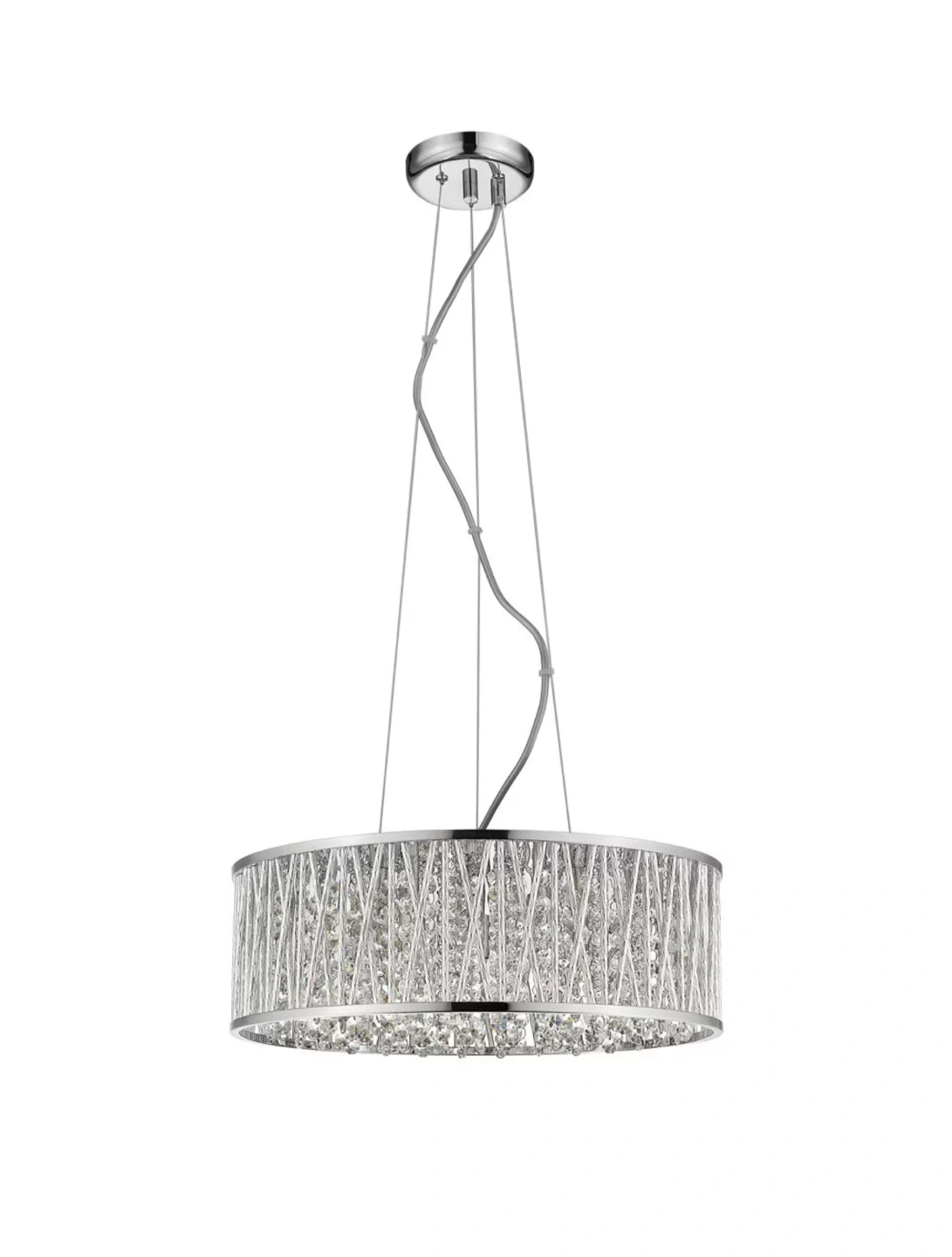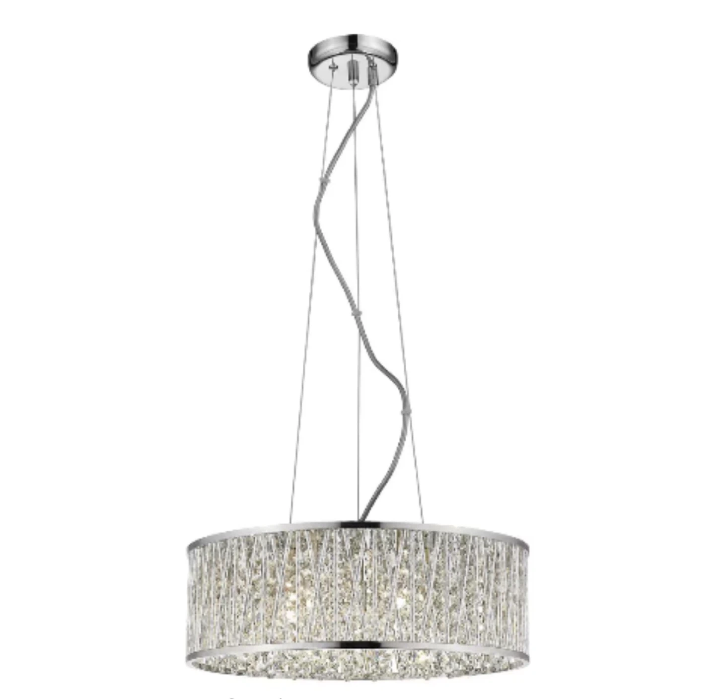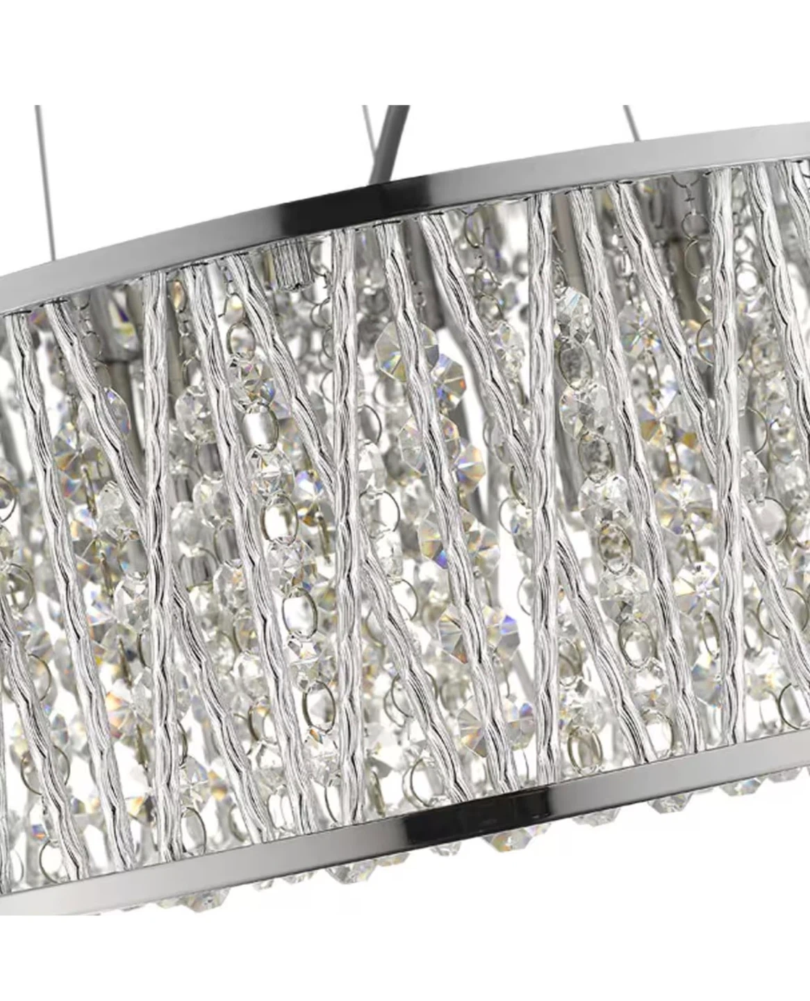 63Add a touch of elegance to your home with this beautiful crystal drum chandelier! It features a chrome finish and sparkling crystals that will catch the light and create a stunning visual effect. Perfect for a dining room, living room, or bedroom, this chandelier will instantly elevate your space
