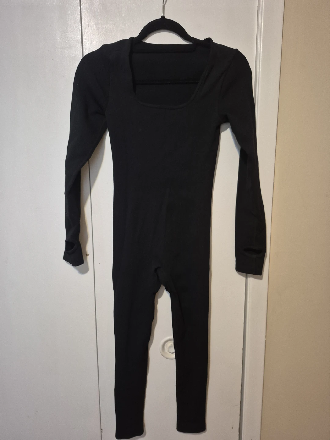Selling an Atmosphere Romper in black! It's in great condition and perfect for layering or wearing on its own. The material is soft and comfortable, making it ideal for lounging or light workouts. It has a flattering square neckline and long sleeves with thumbholes!