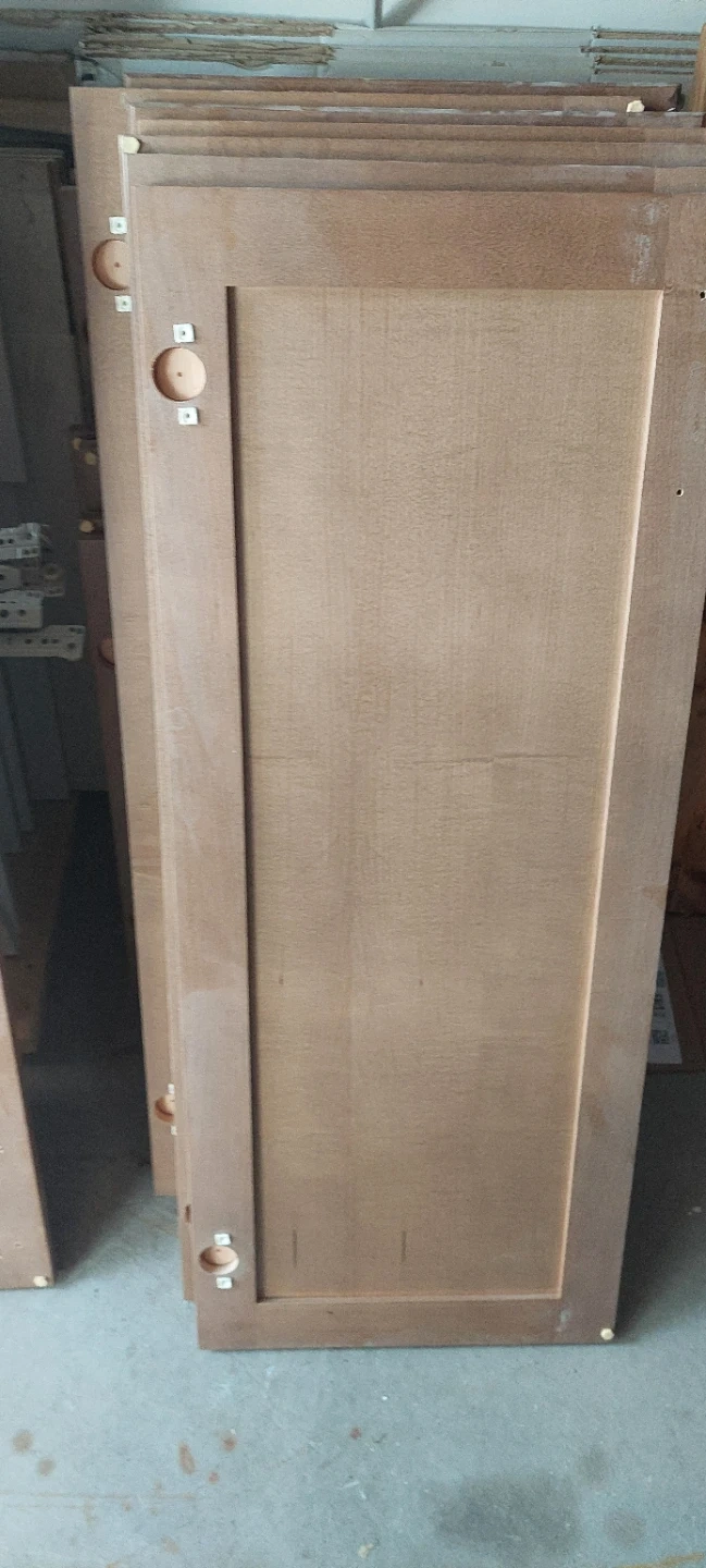 I have several kitchen cabinet doors for sale. One of the doors has a glass insert with a patterned design. The dimensions are