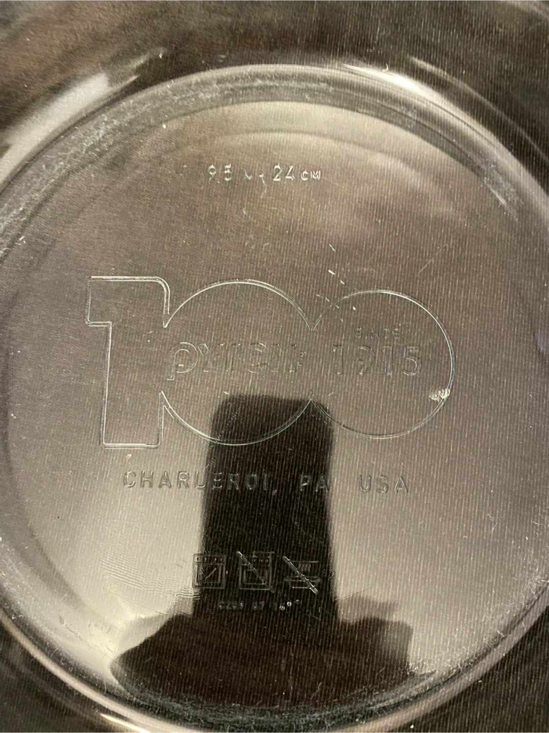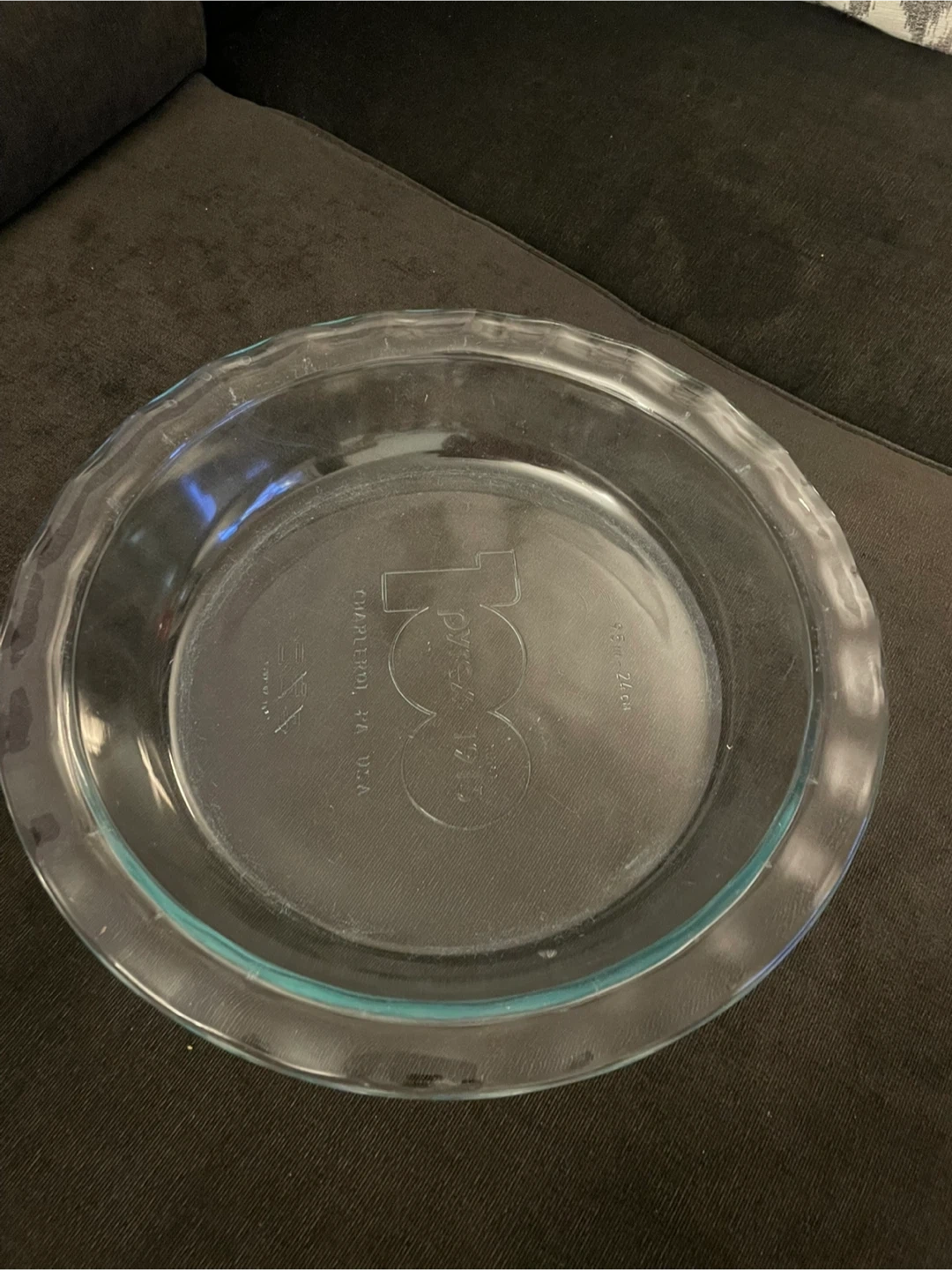 47Selling a Pyrex glass pie plate, perfect for baking your favourite pies! It's in great condition and measures 9.5 inches in diameter