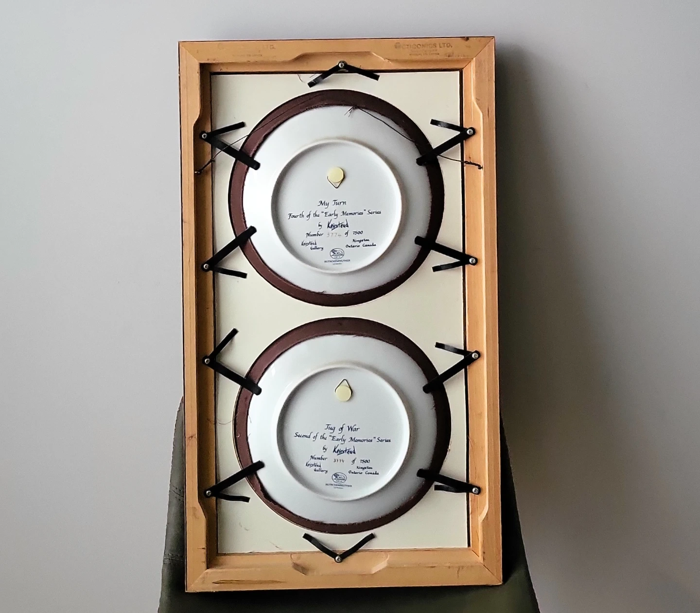 23Framed Loriotko plates from the "Early Memories" series up for grabs! One plate is titled "May Term, Fourth of the Early Memories Series" and is number 573 of 7500. The other is "Tug of War, Second of the Early Memories Series" and is number 1116 of 7500