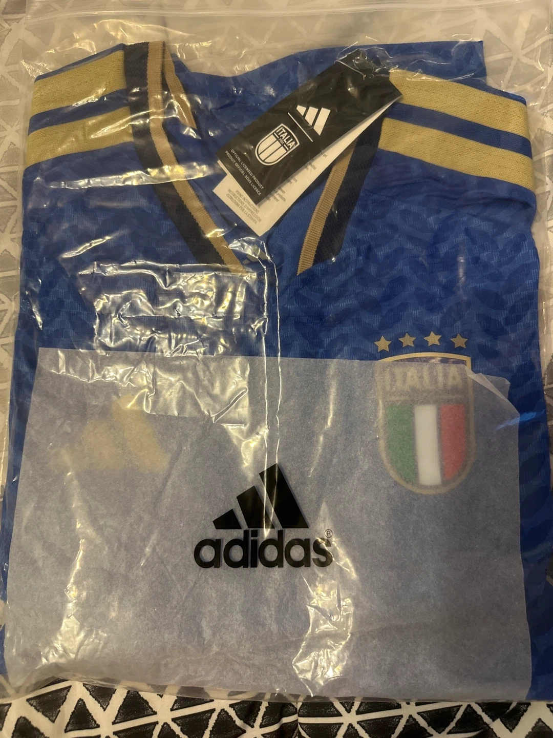 Selling a brand new Adidas Italia soccer jersey! The jersey is still in its original packaging and has never been worn. It features the official Italia logo and Adidas branding. Perfect for any soccer fan!