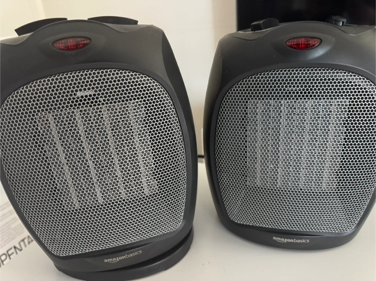 Selling a pair of AmazonBasics portable small space heaters in black! They're perfect for heating up small spaces quickly and efficiently. Great for adding a little extra warmth on those chilly Canadian evenings