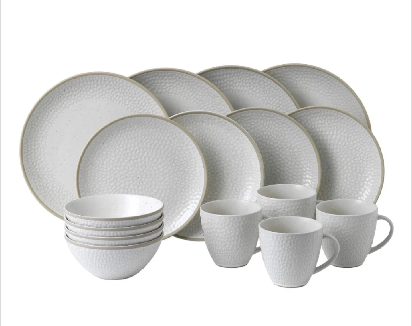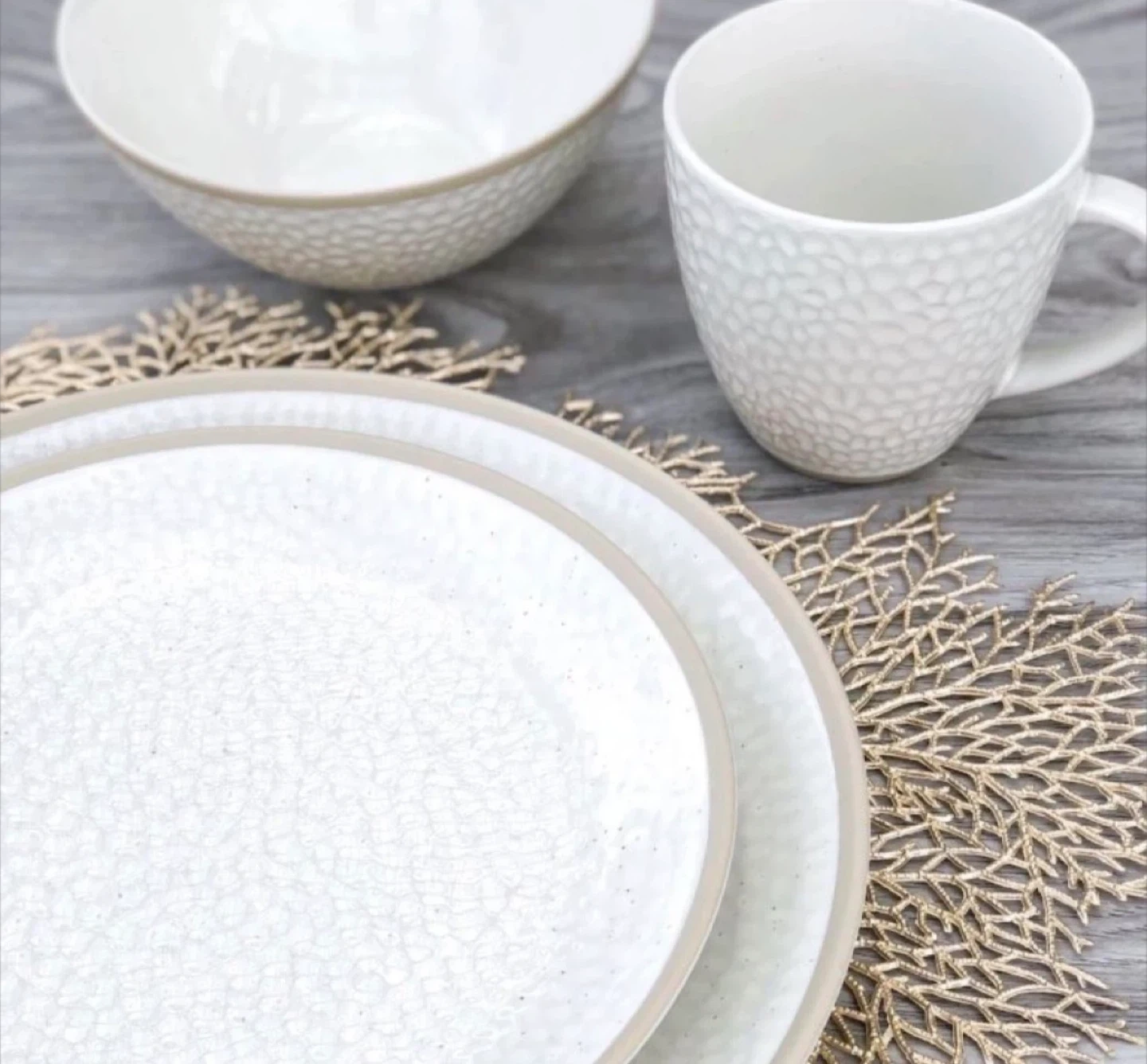 340This is a beautiful stoneware dinnerware set, perfect for everyday use or special occasions! The set includes plates, bowls, and mugs.