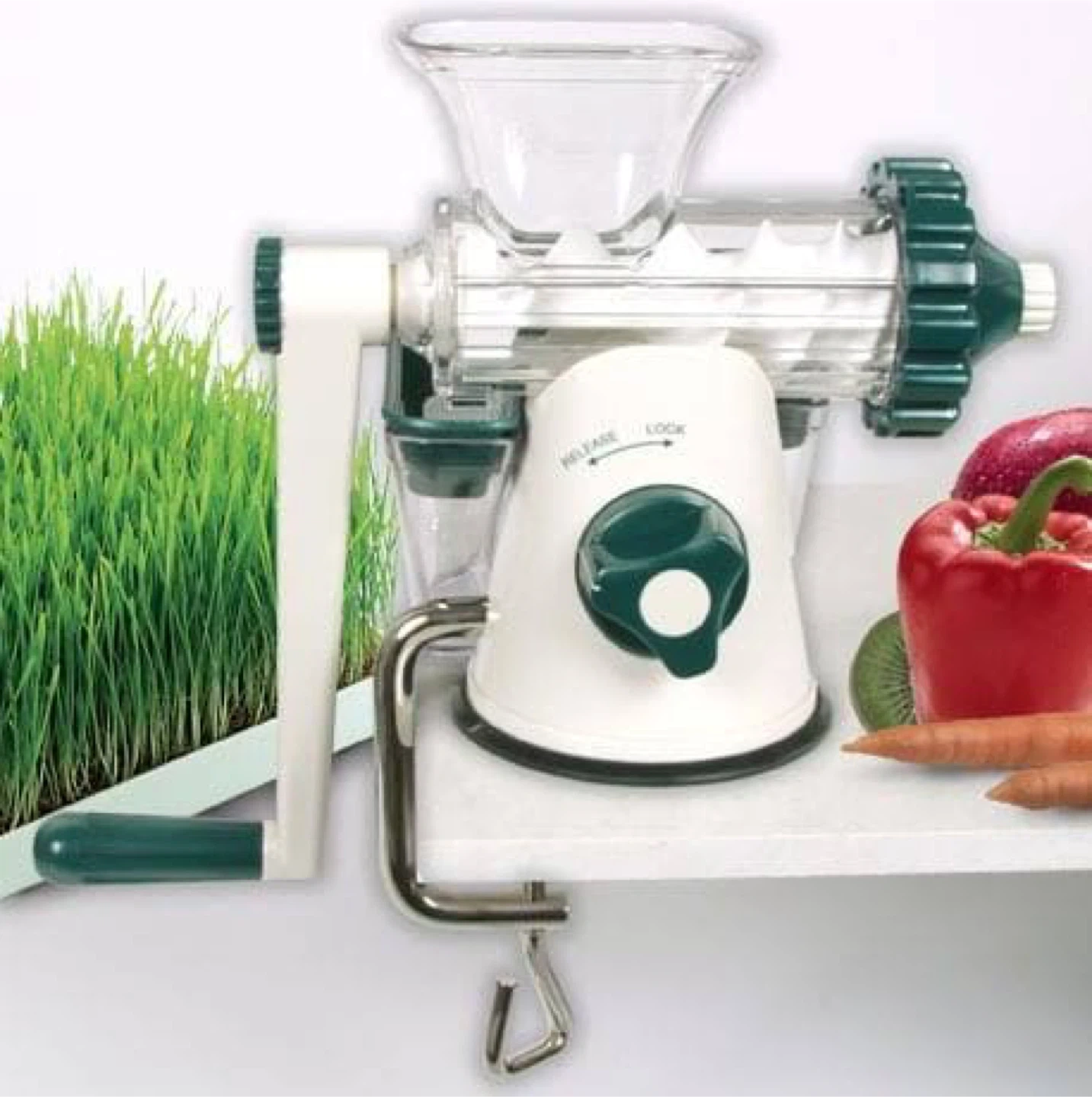 Easy Health Manual Wheatgrass Juicer, is a great value, super light compact manual juicer recommend for juicing wheatgrass, sprouts, herbs and leafy greens. It makes an ideal travel juicer weighting less than 1kg.