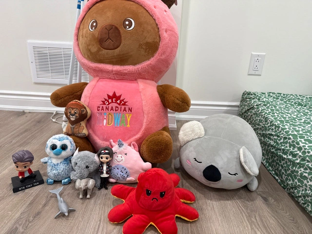 0I am offering a delightful collection of plush toys, perfect for kids and collectors alike! This mixed lot features a variety of characters and styles, as you can see in the images. They are in good condition, ready to bring joy to a new home. Each toy has been gently cared for. * Various sizes and characters * Soft and huggable materials * Great for playtime or display These snuggly friends are looking for a new home! Act fast because if you're reading this, they're still available!