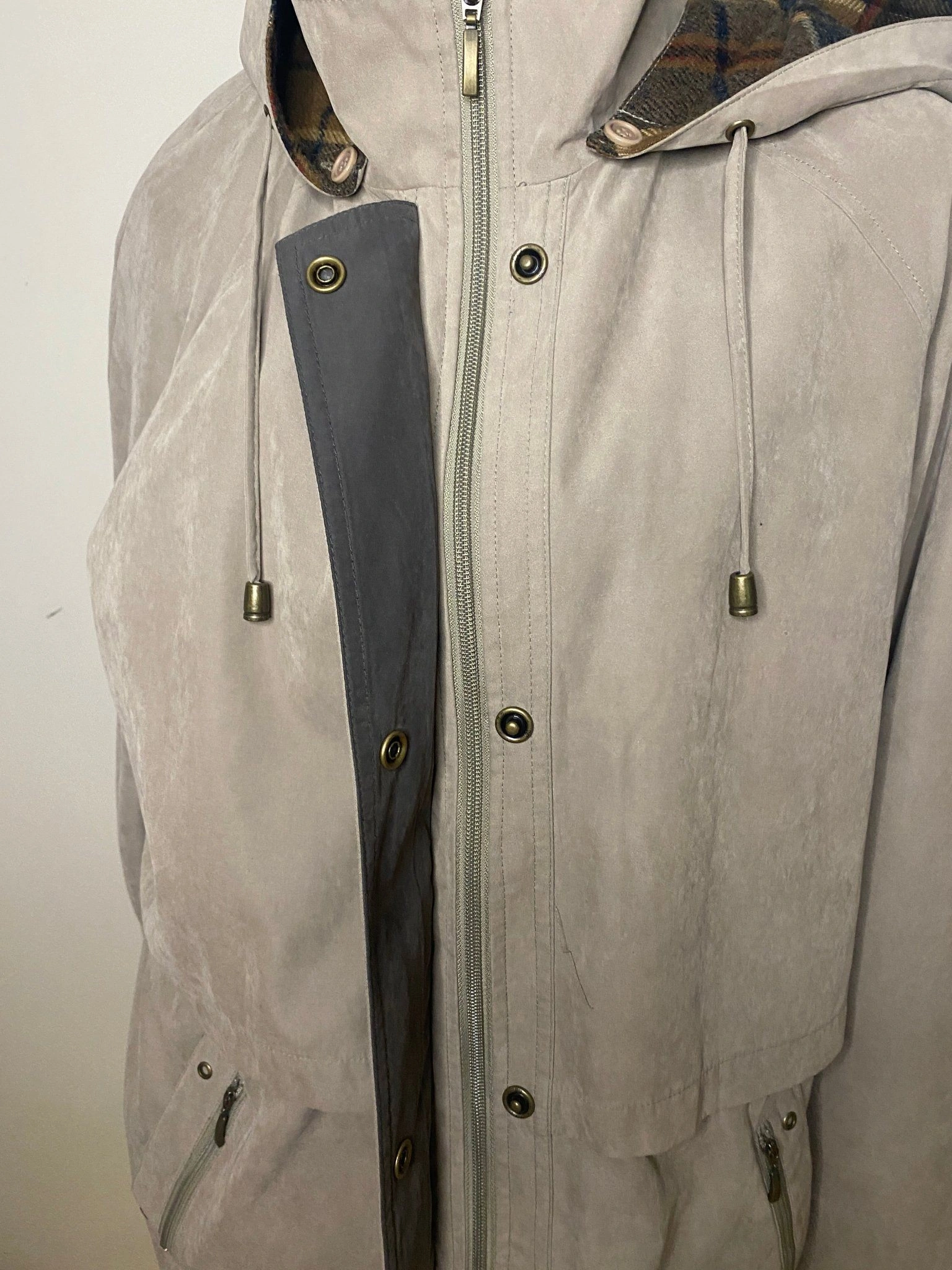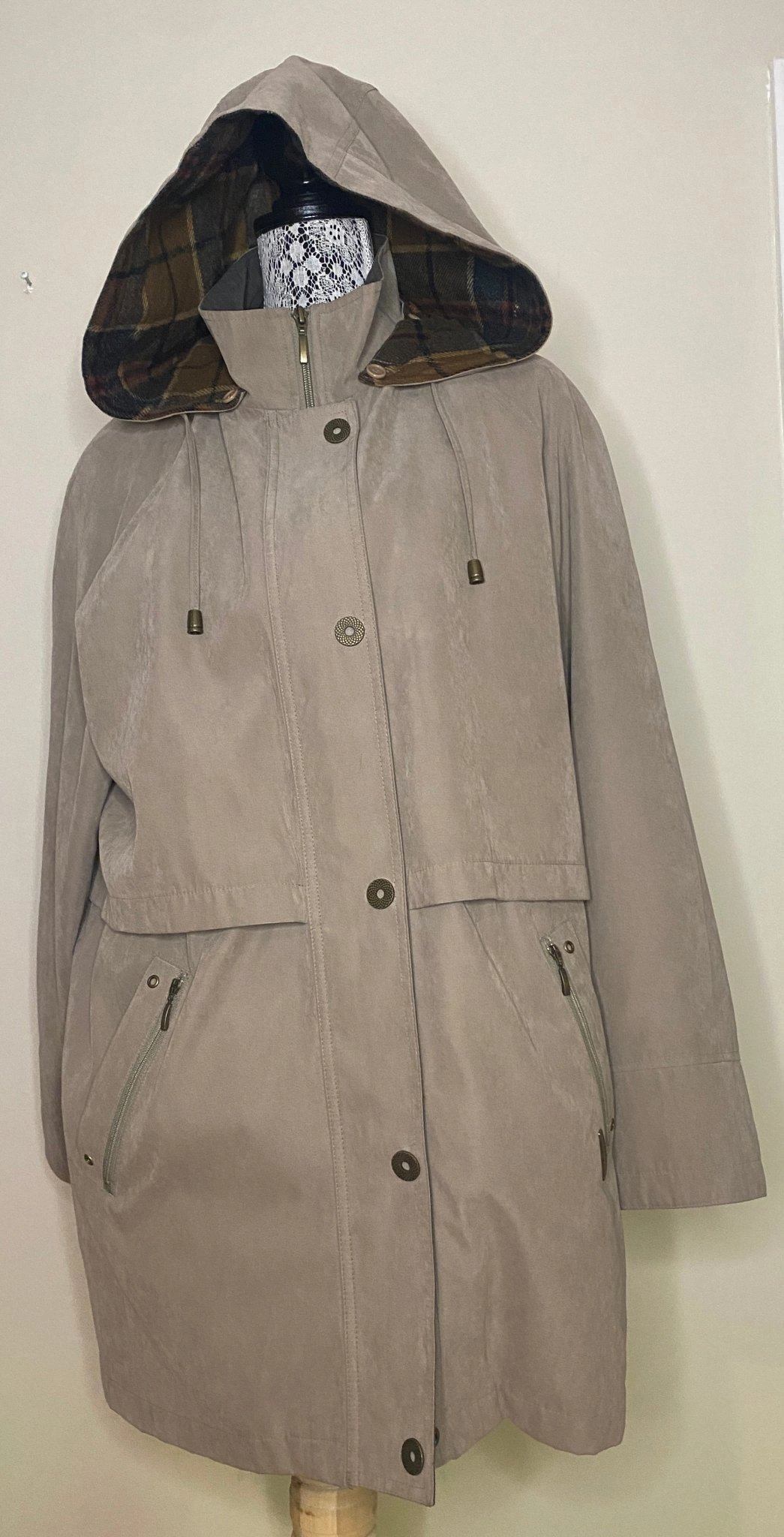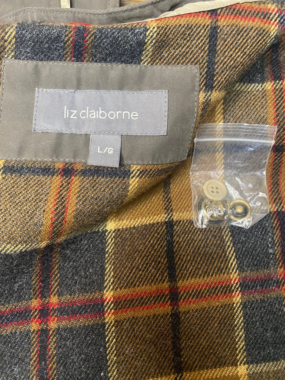 23Get stylish and keep warm and cozy with the Liz Claiborne Soft Shell Lined Hooded Tan Women’s Coat. Designed for both function and fashion, this versatile coat features a soft shell exterior for weather resistance and a plush, lined interior for extra warmth. The adjustable hood and tailored fit make it a flattering choice for any occasion, from casual outings to brisk walks. The neutral tan color of this stunning coat allows you to pair this with many clothing choices, from casual everyday wear to a more focused function where you need to keep toasty. This Liz Claiborne Soft Shell Coat has a zipper and button closure for added security and protection from the elements. The detachable hood has a drawstring closure to keep your head and face secure from the elements. There are Extra buttons included with this coat, stashed securely in the pocket. The 85/15 polyester/nylon softshell construction is paired with a polyester fleece lining for added warmth and durability. In excellent pre-loved condition with no rips, stains or smell, this Liz Claiborne Soft Shell Lined Hooded Tan Women’s Coat is a women's large. For sizing specifics, please see the attached measurement guide included with the pictures in our listing. Local pickup is in Etobicoke near Islington and The Westway. We offer shipping and local delivery for this item. Please send a message about availability and cost associated with these respective services.