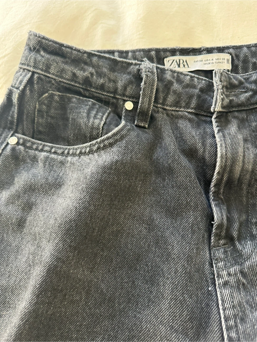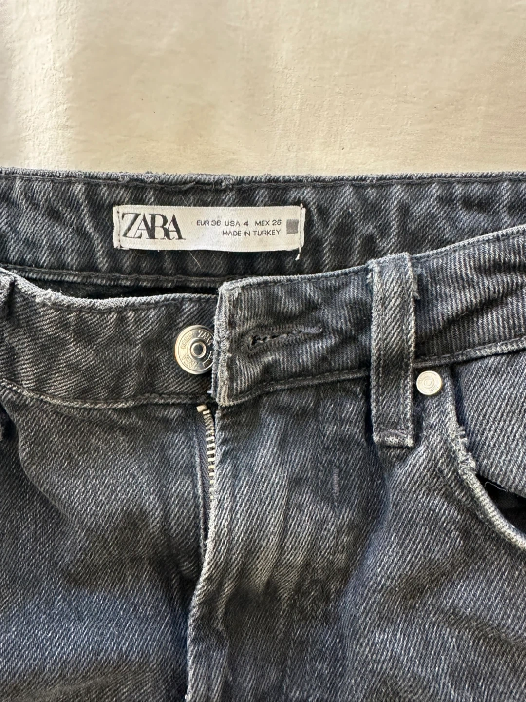 Dark grey Zara jeans. These jeans are in great condition and have a stylish, slightly distressed look with a frayed hem. Perfect for casual wear!i