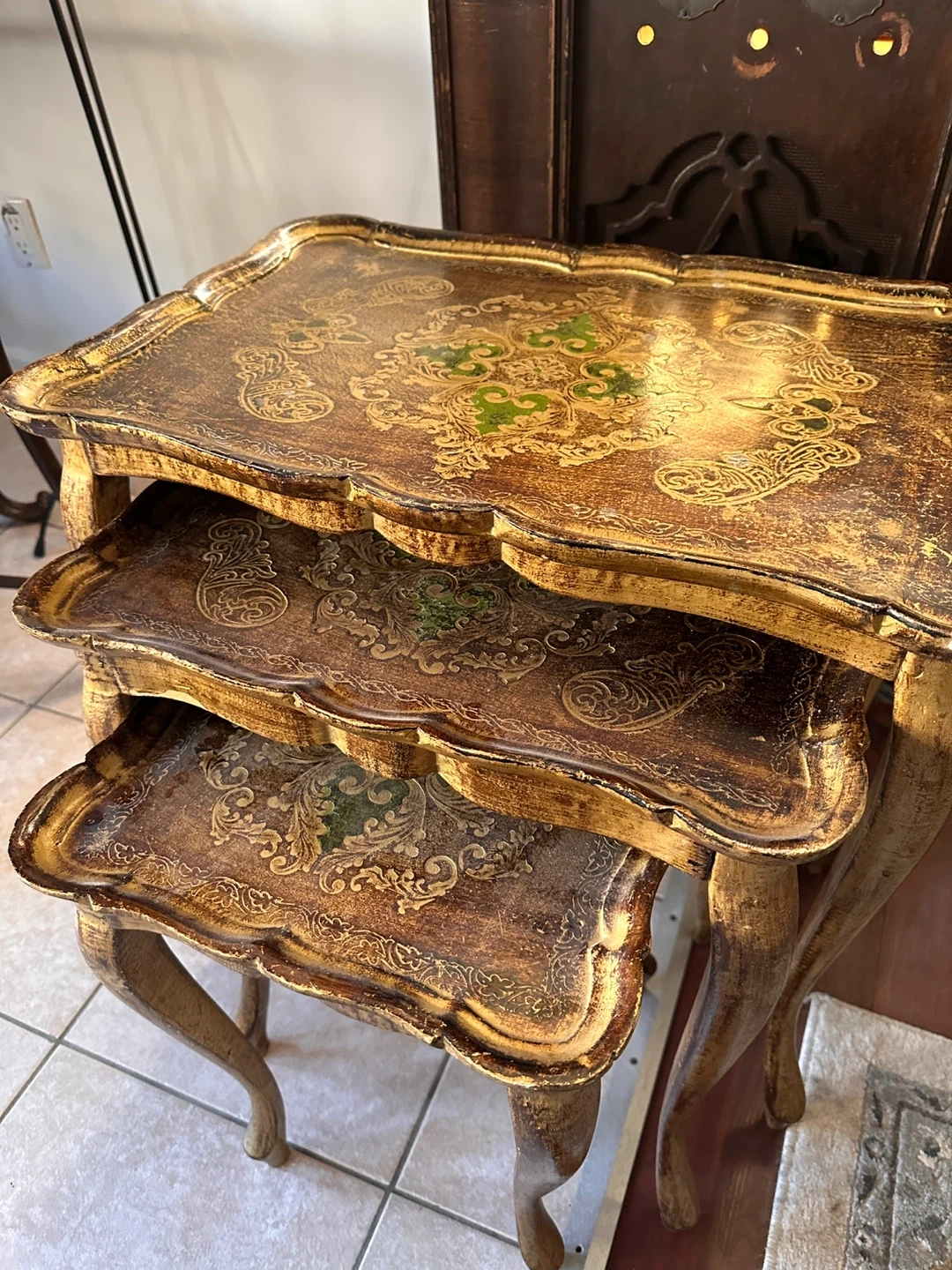 This sweet antique set of 3 Florentine nesting tables is both stylish and practical - perfect for a luxe look in small spaces